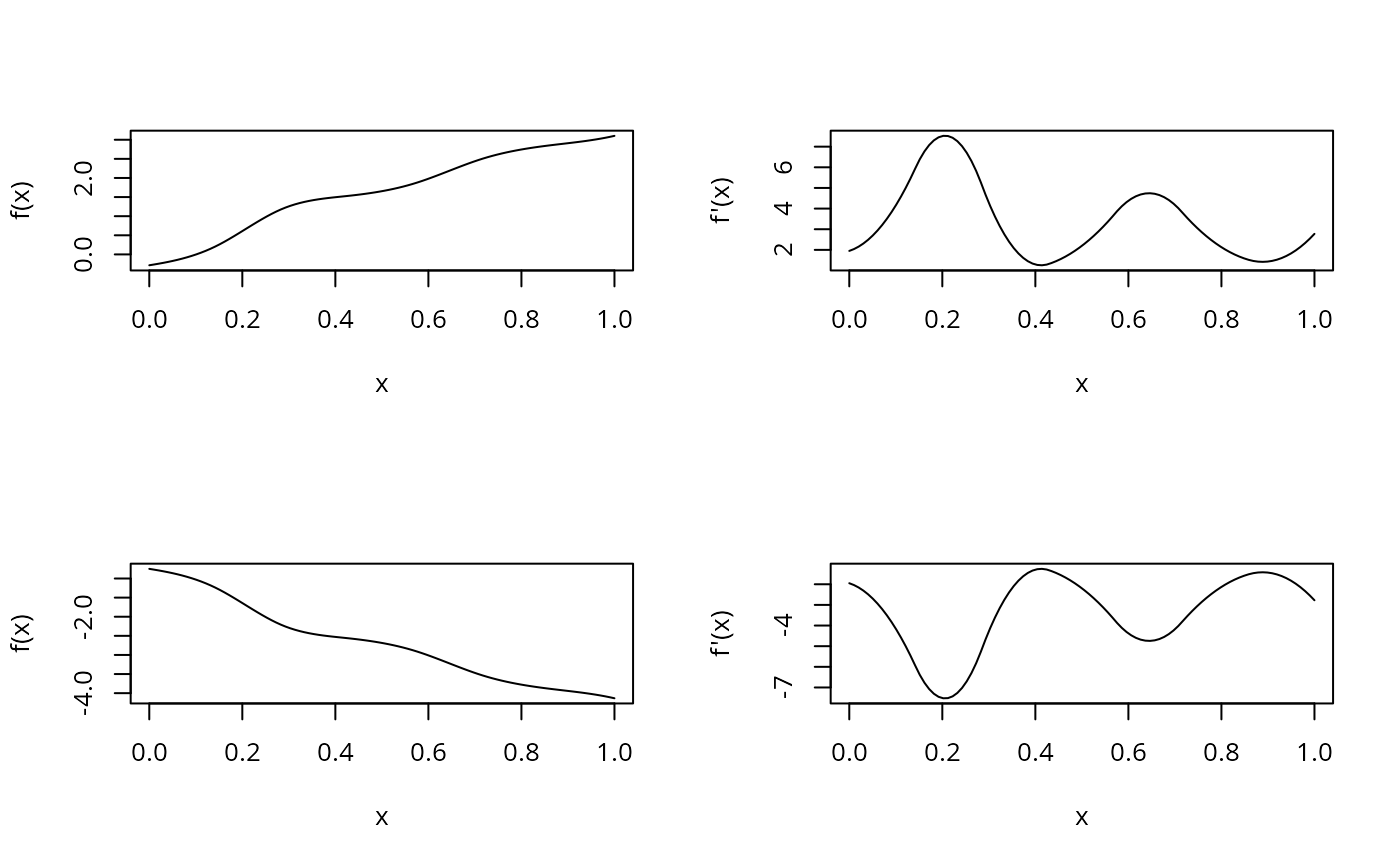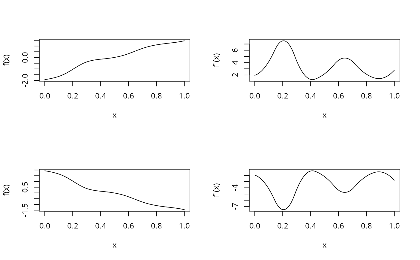 plot(x,Xd%*%b,type="l",ylab="f'(x)")