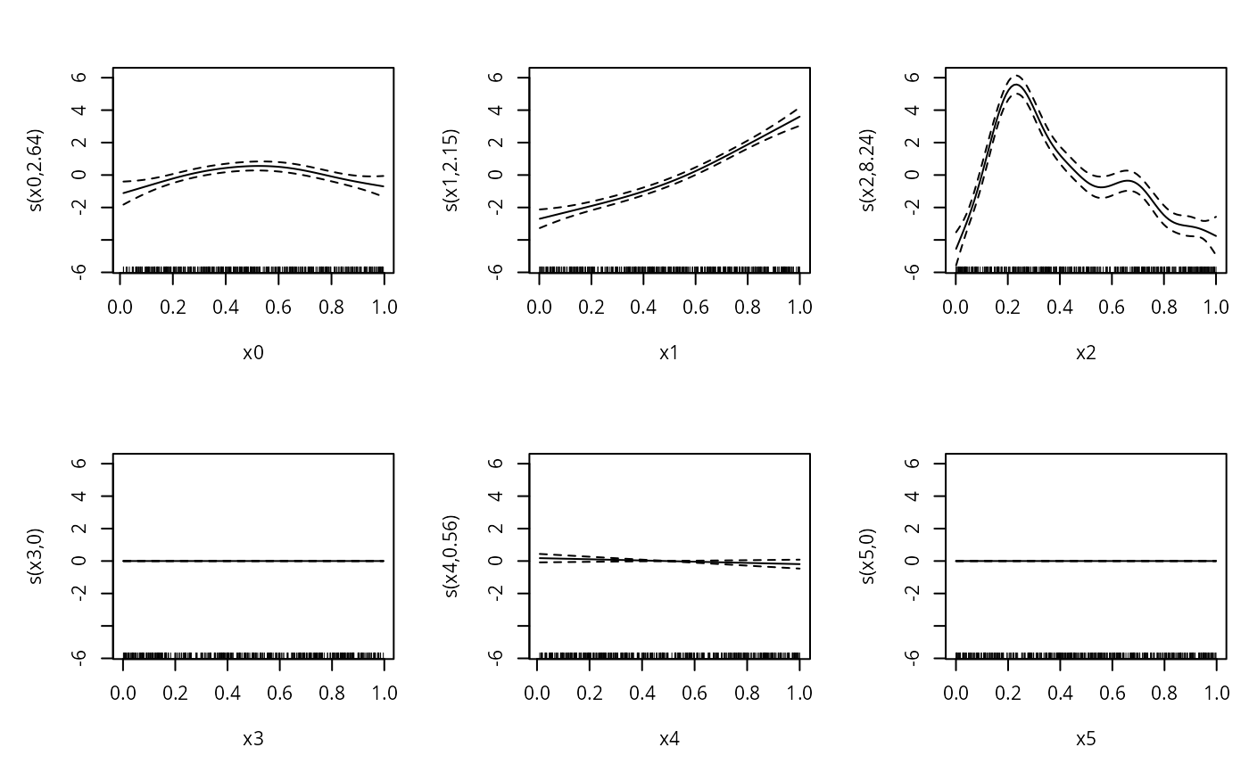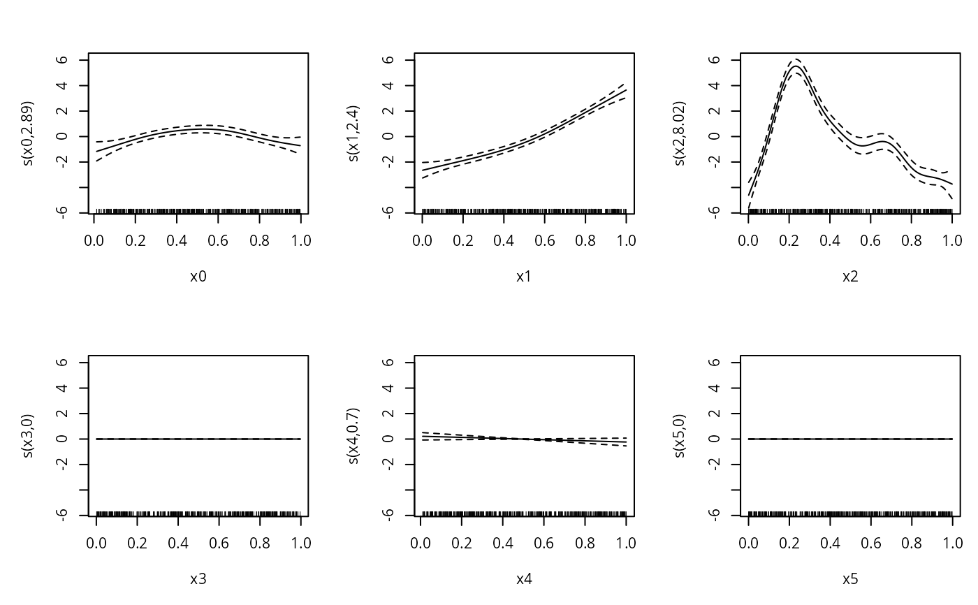 #> s(x3, bs = "cr") + s(x4, bs = "cr") + s(x5, bs = "cr")