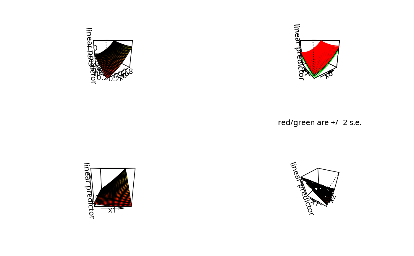 vis.gam(g,se=2,theta=-35) # with twice standard error surfaces