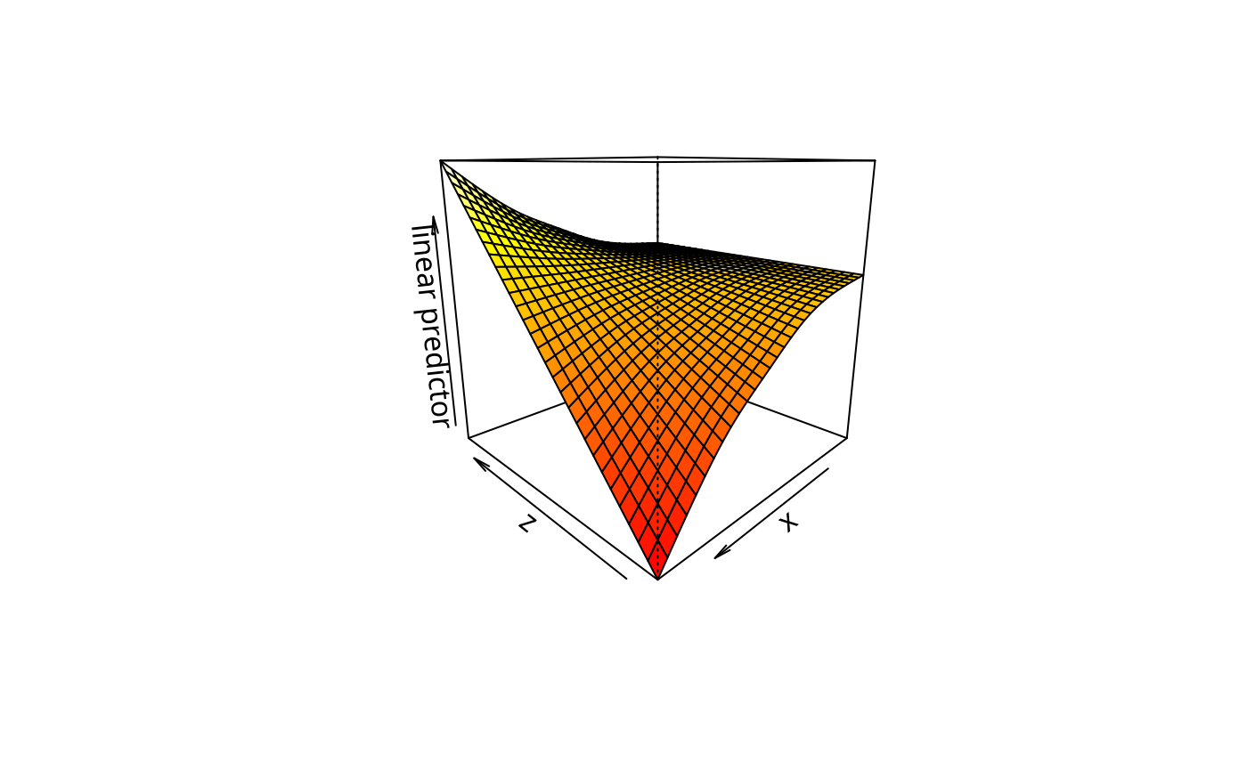 vis.gam(b,theta=-35,color="heat",cond=list(z=1)) # by variable example