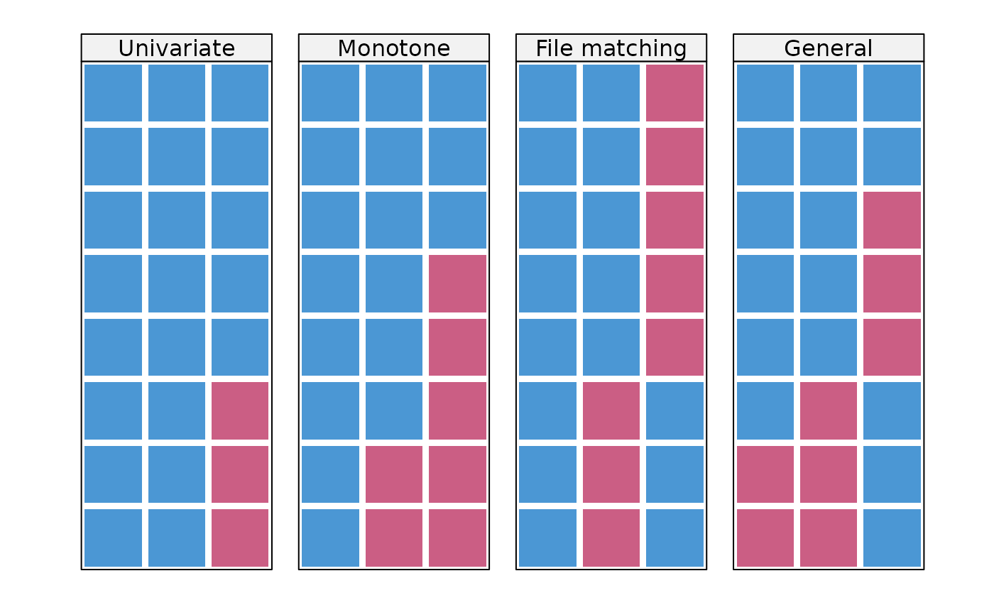 types <- c("Univariate", "Monotone", "File matching", "General")
