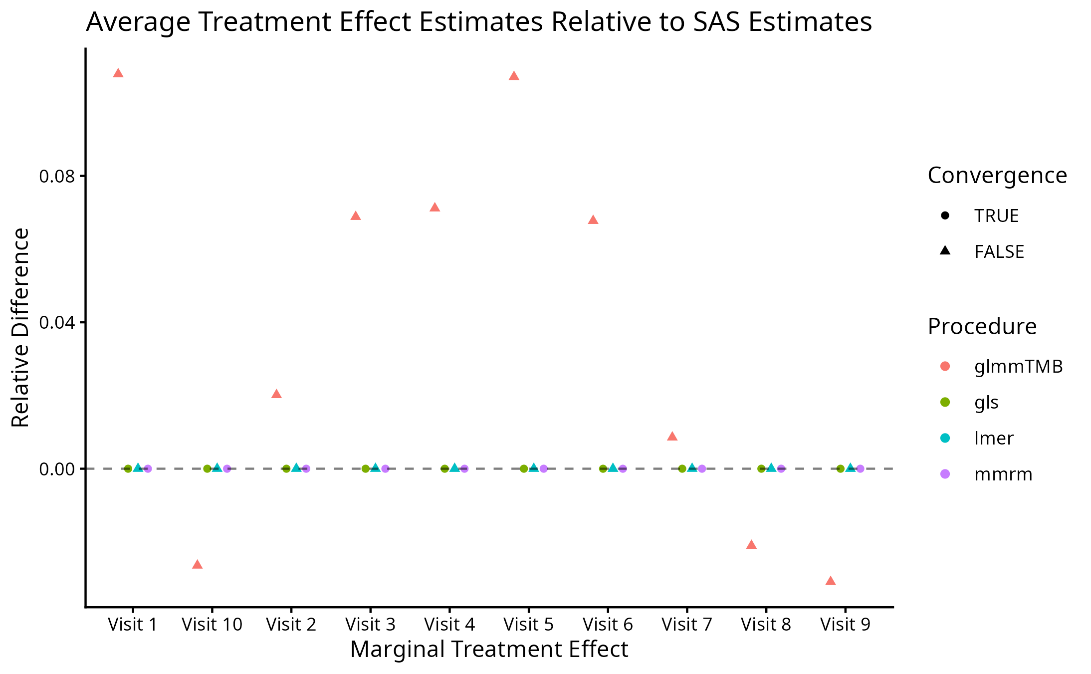 PROC GLIMMIX’s estimates. Convergence status is also