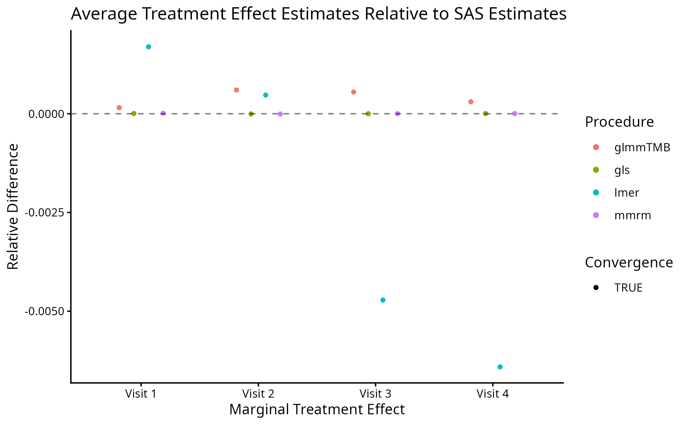 We again find that mmrm produces the fastest convergence