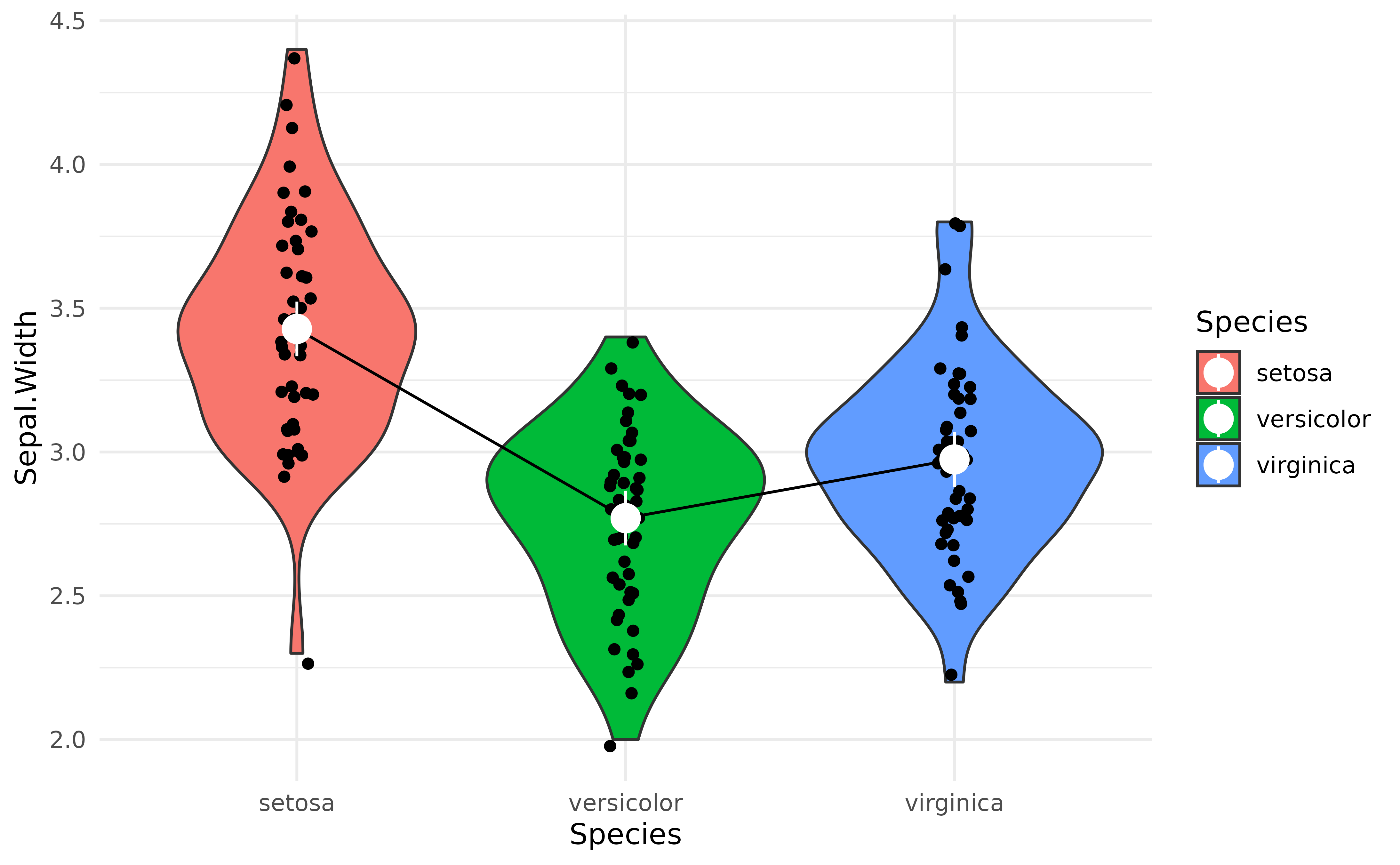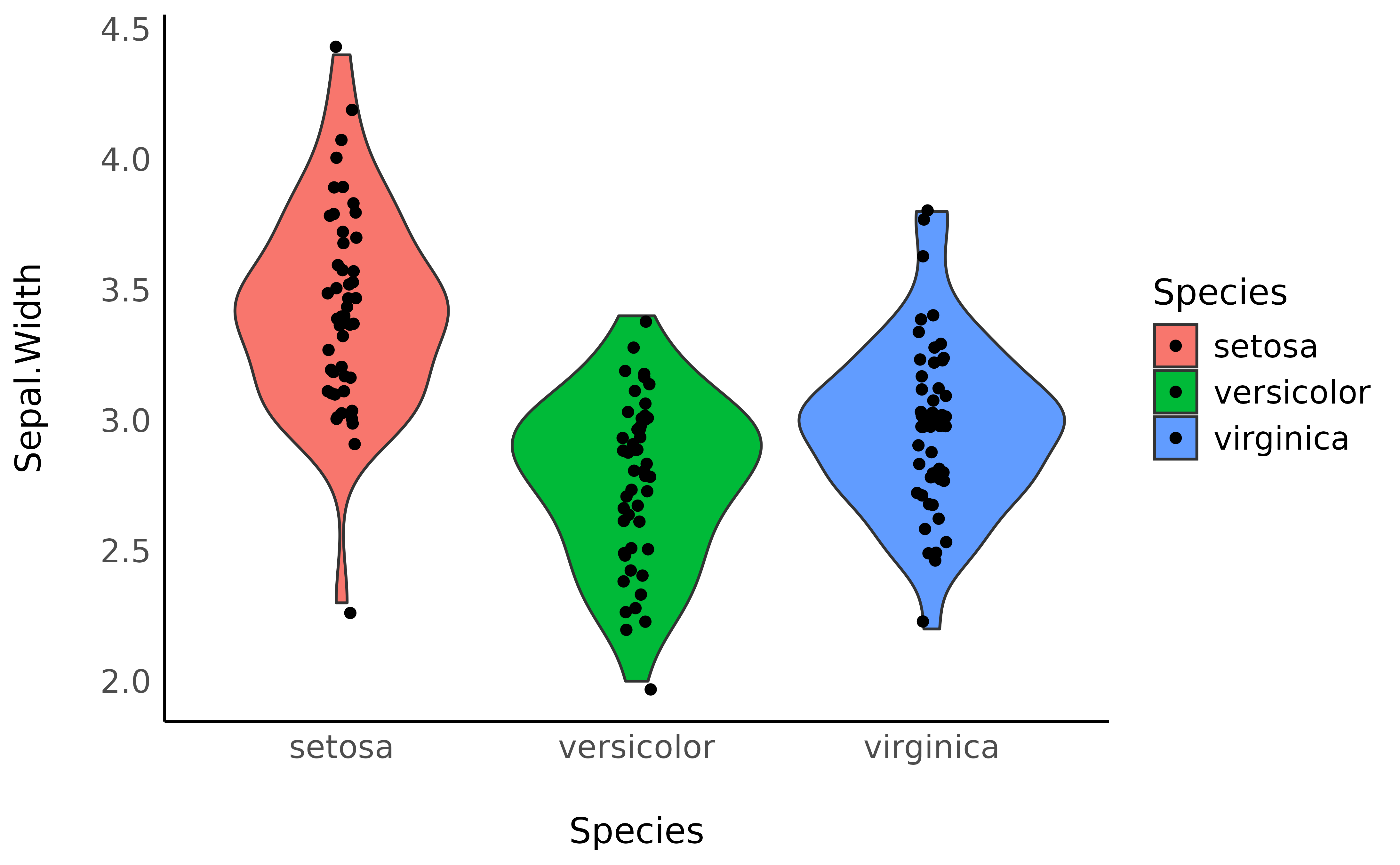 p <- ggplot(iris, aes(x = Species, y = Sepal.Width, fill = Species)) +