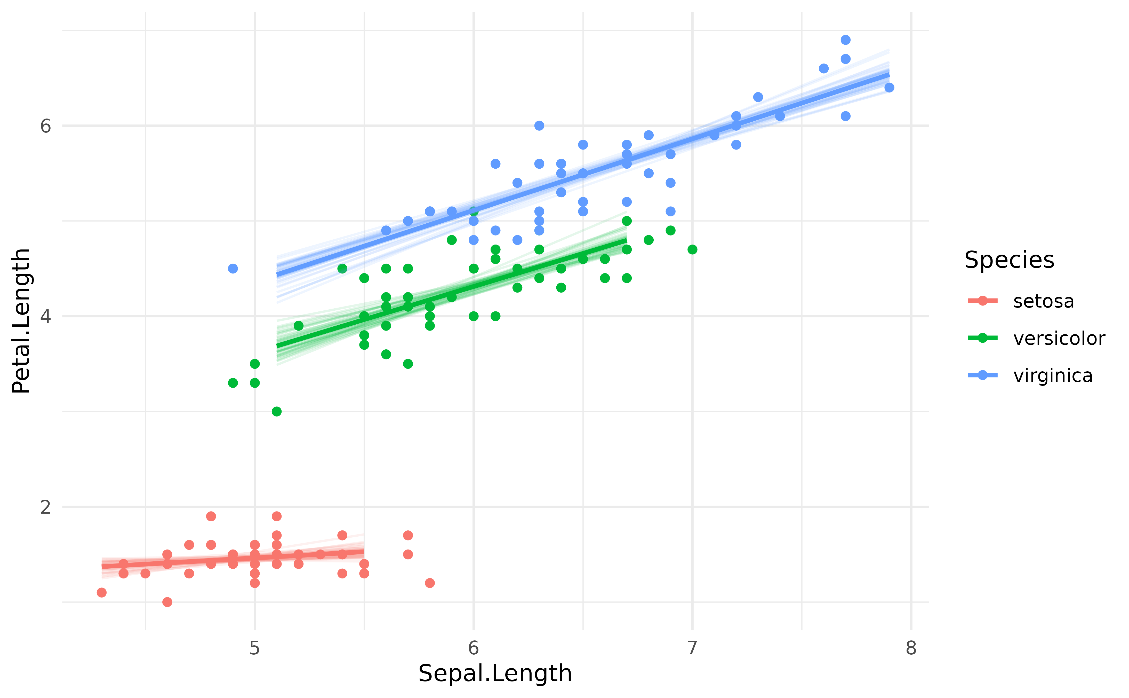 geom_line(data = predicted, aes(y = Predicted, color = Species), linewidth = 1) +