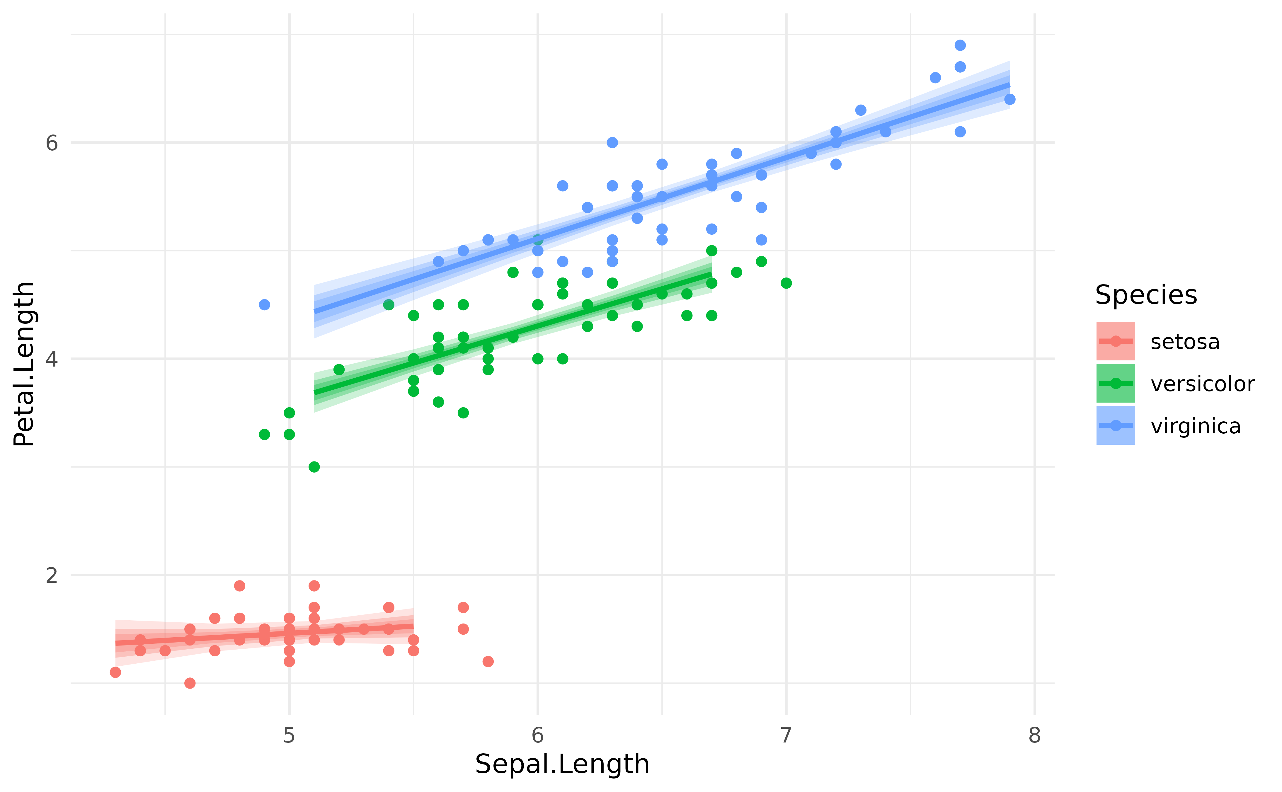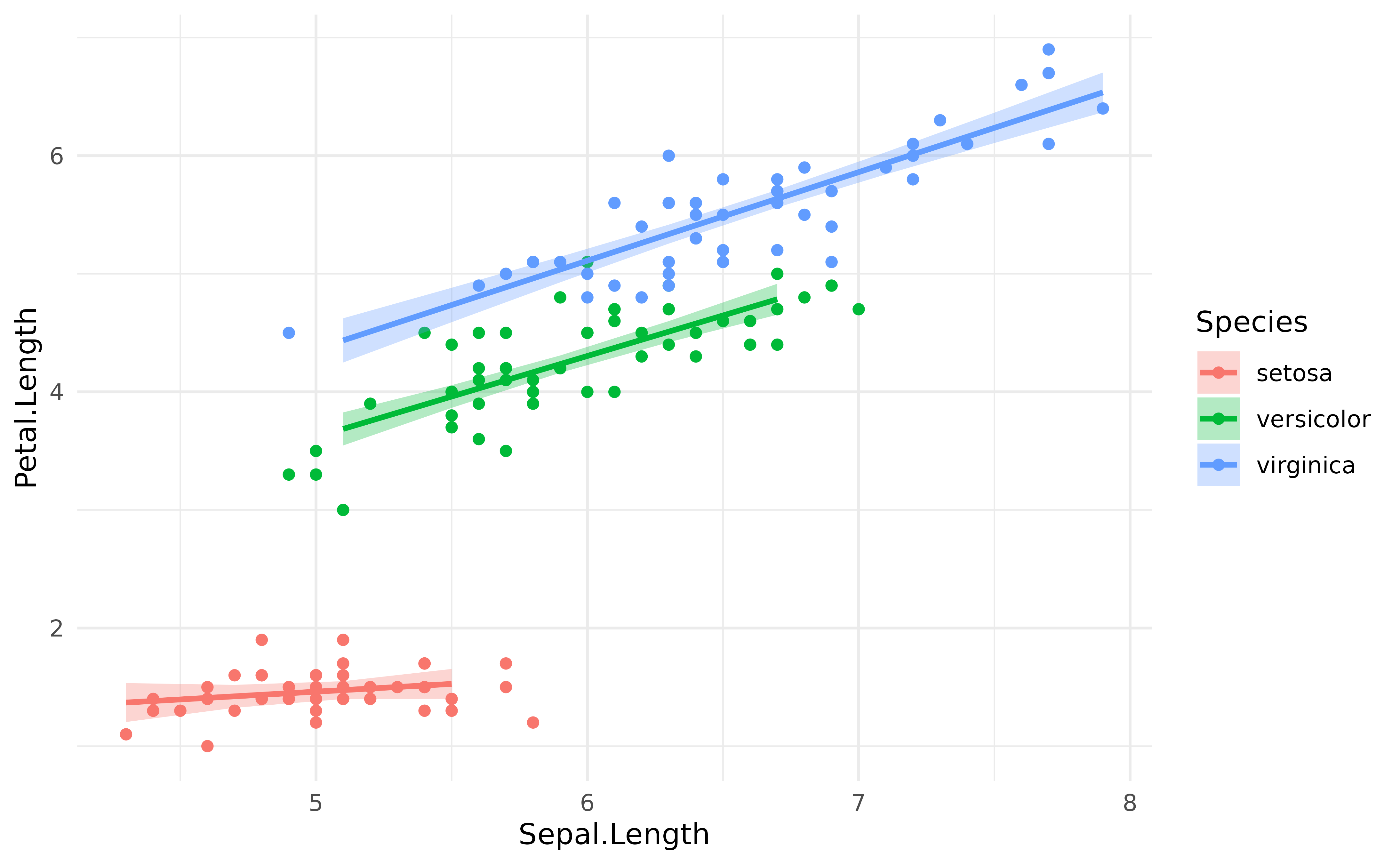 model <- lm(Petal.Length ~ Sepal.Length * Species, data = iris)