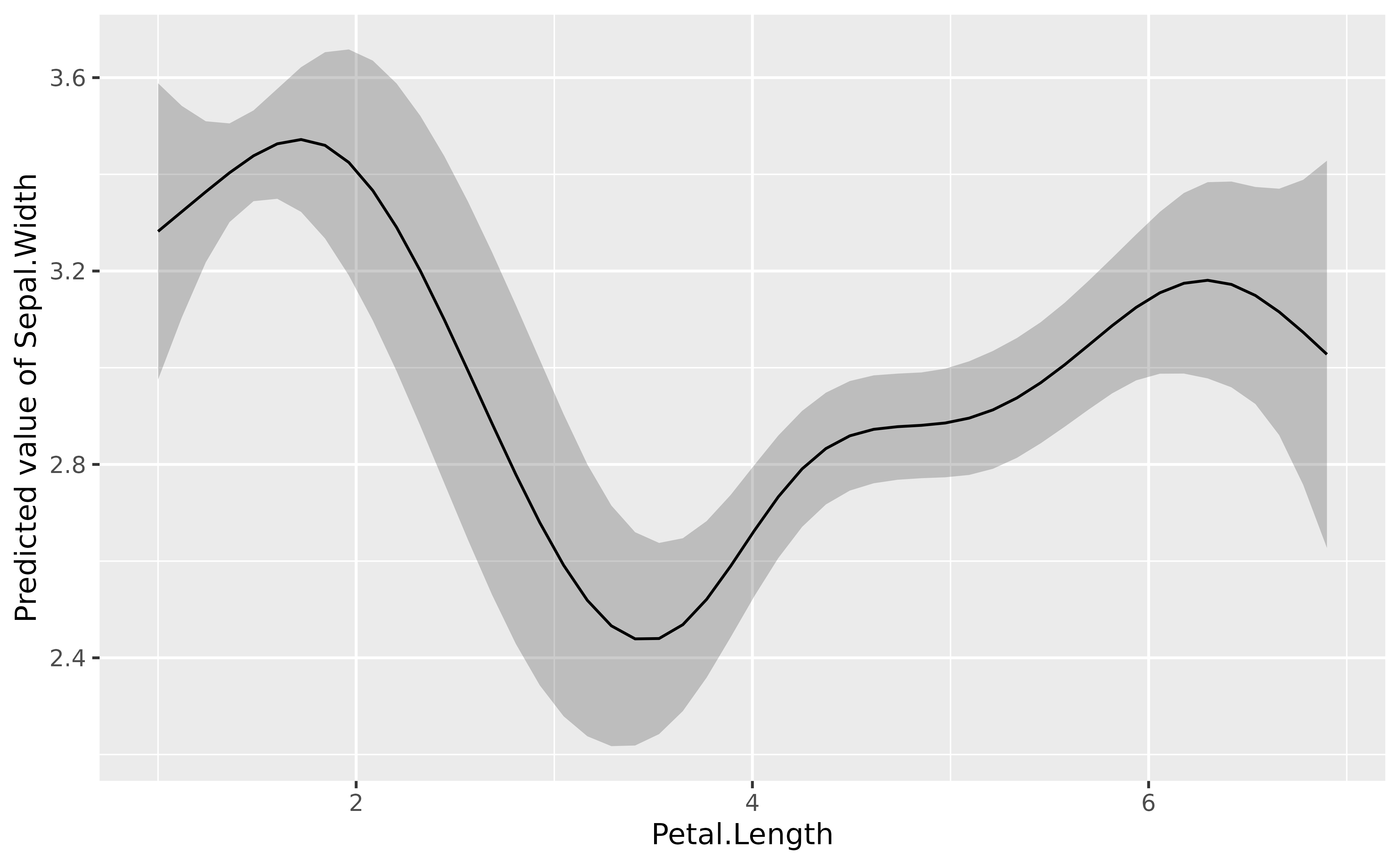 model <- mgcv::gam(Sepal.Width ~ s(Petal.Length), data = iris)