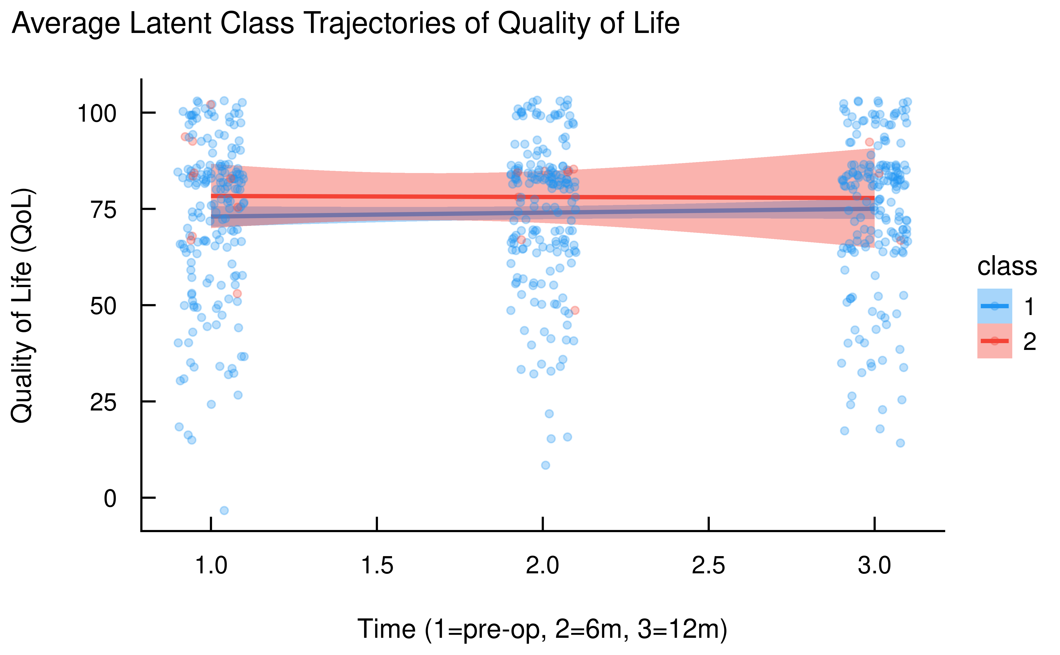 subgroups of patients with different QoL trajectories. We will fit a