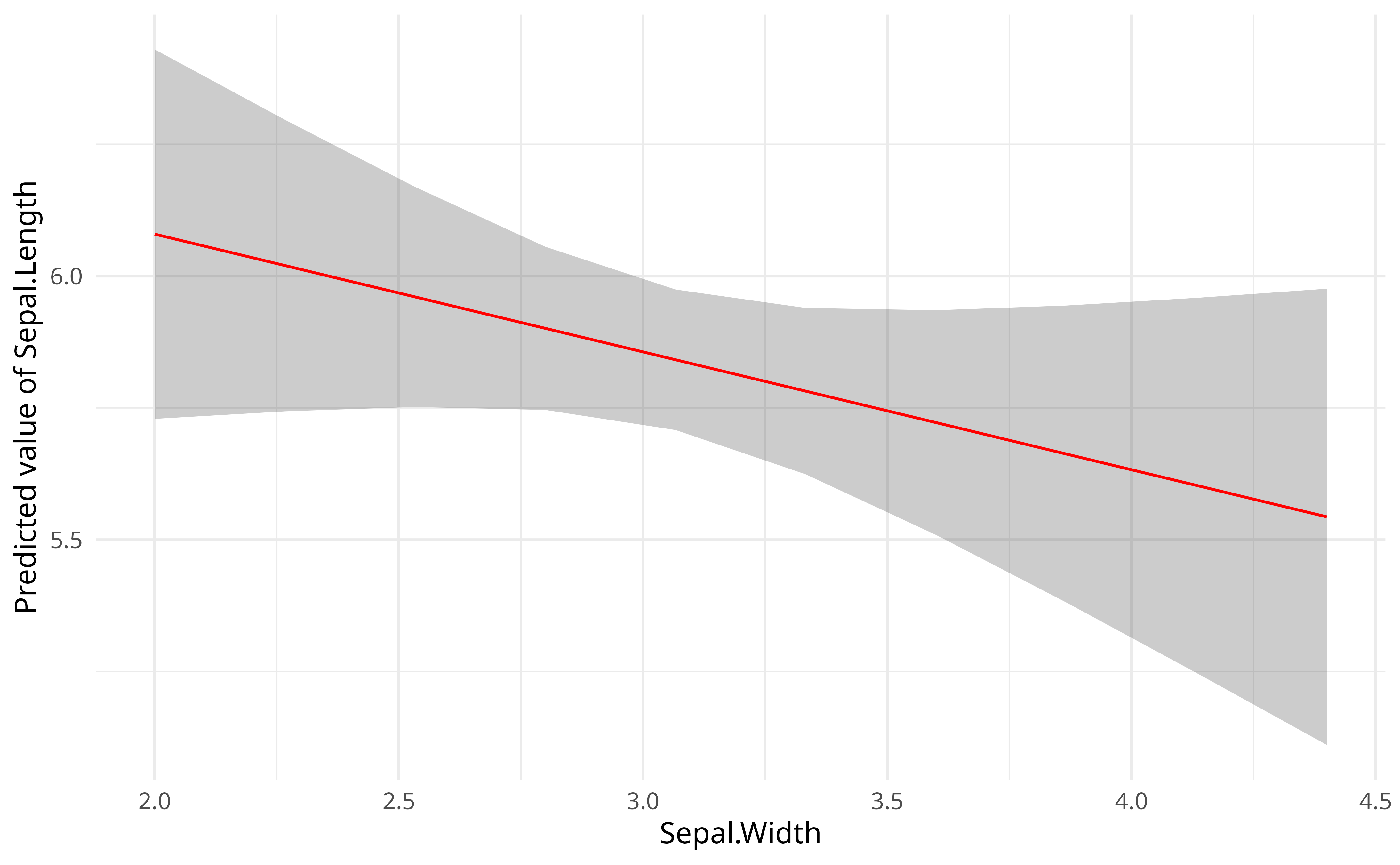 > Sepal.Width | Predicted | SE | 95% CI