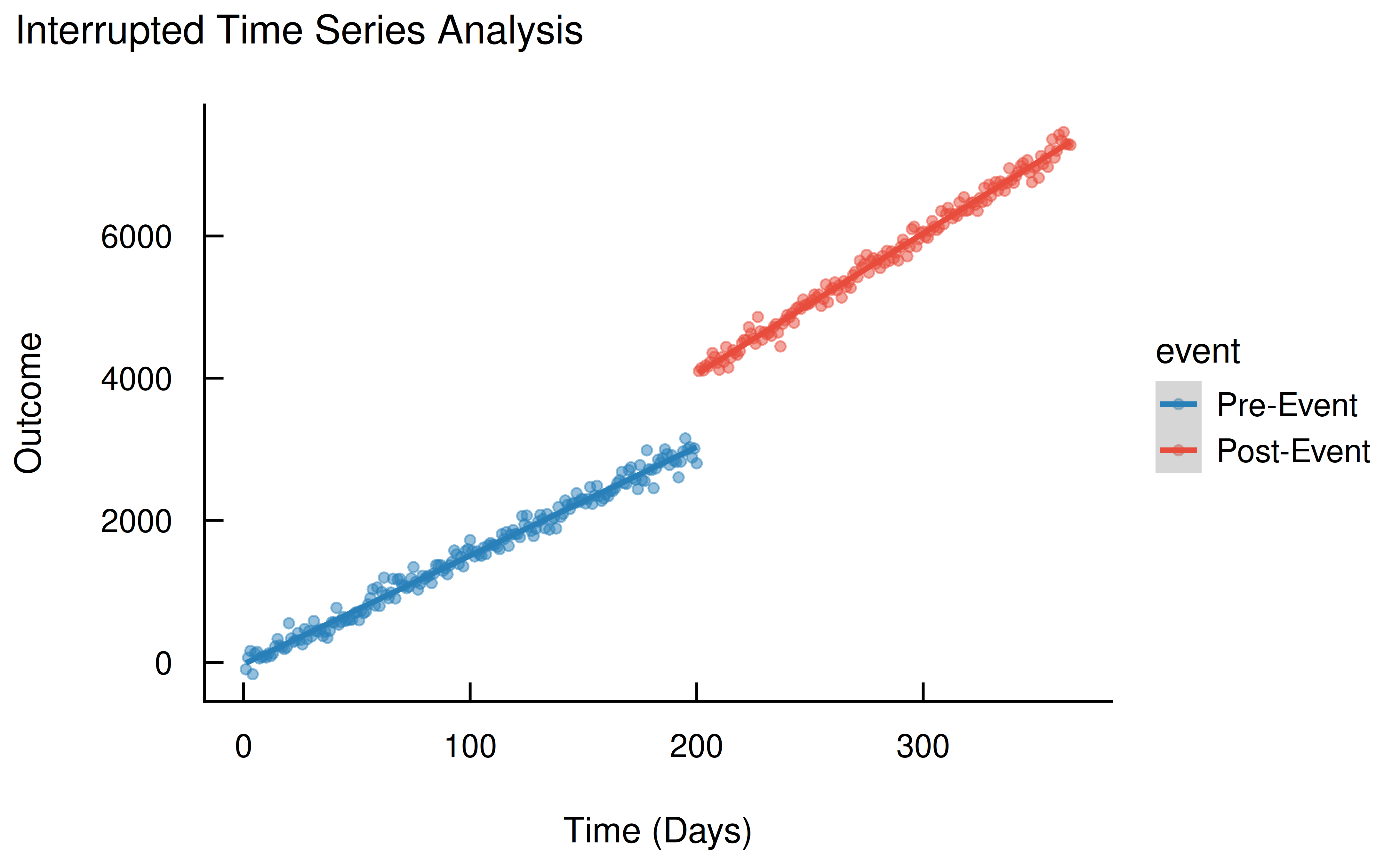 labs(title = "Interrupted Time Series Analysis", x = "Time (Days)", y = "Outcome") +