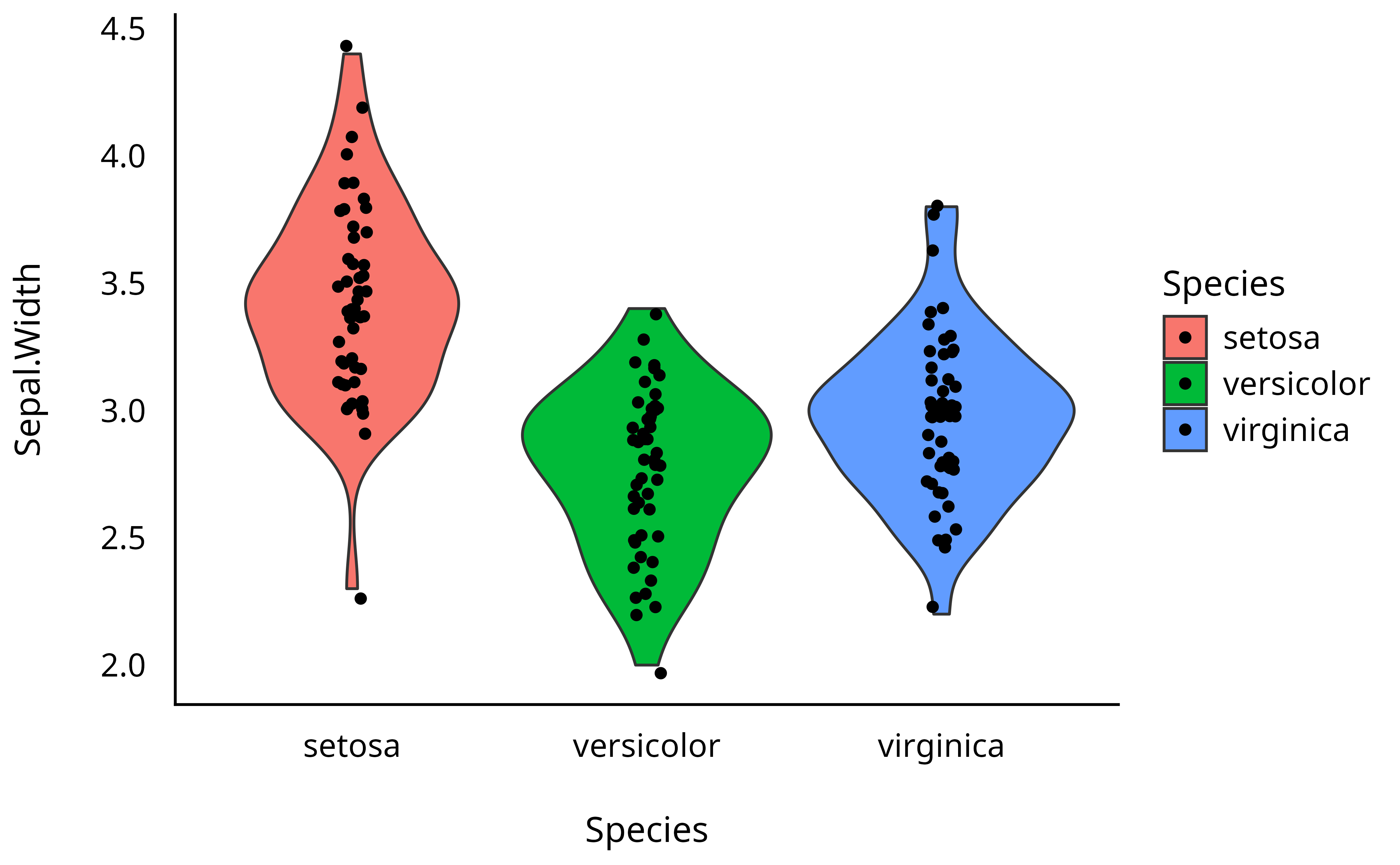 p <- ggplot(iris, aes(x = Species, y = Sepal.Width, fill = Species)) +