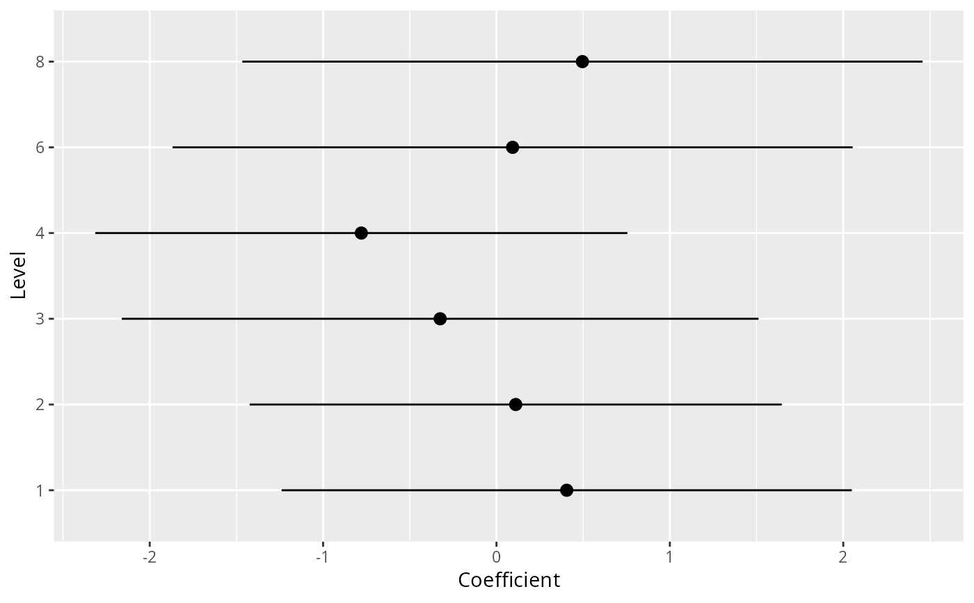 #> carb | 3 | (Intercept) | -0.32 | 0.94 | [-2.16, 1.51]