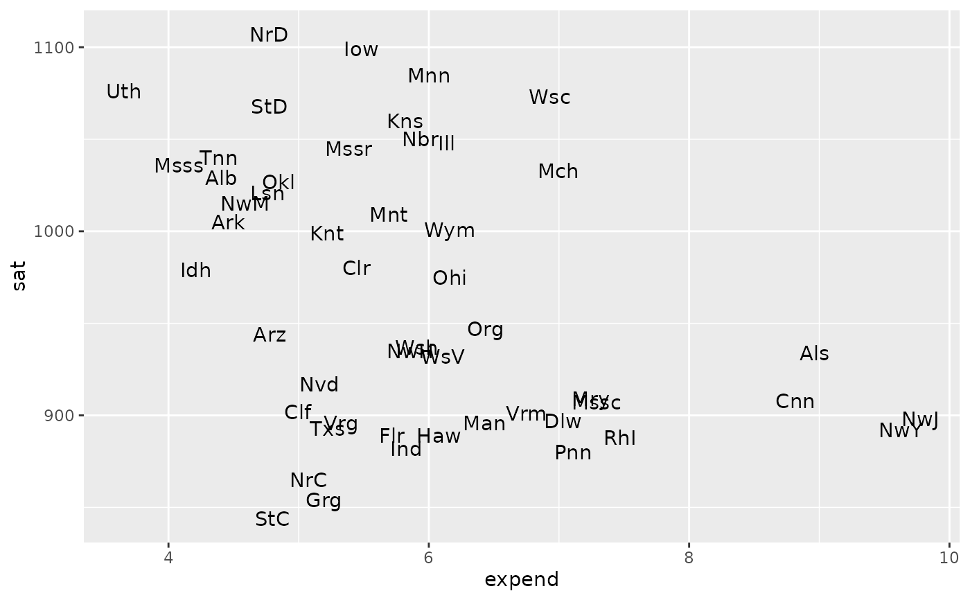 SAT data assembled for a statistics education journal article on the link between SAT scores and measures of educational expenditures