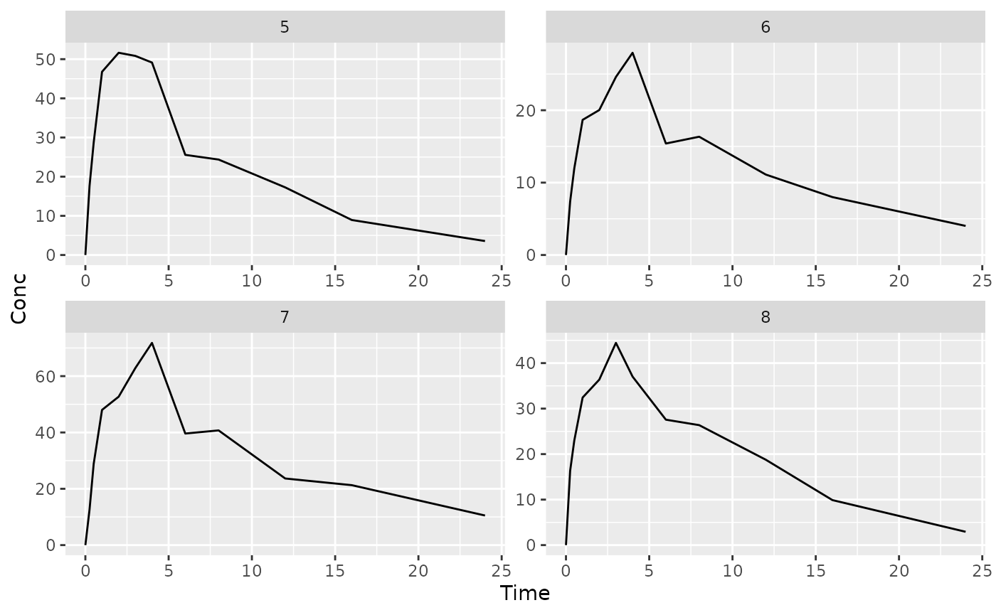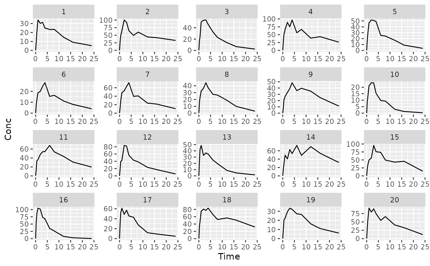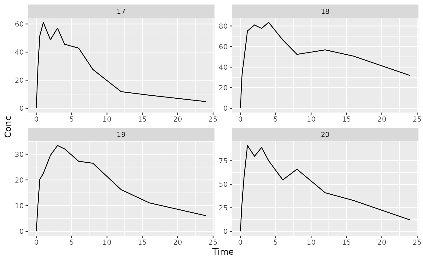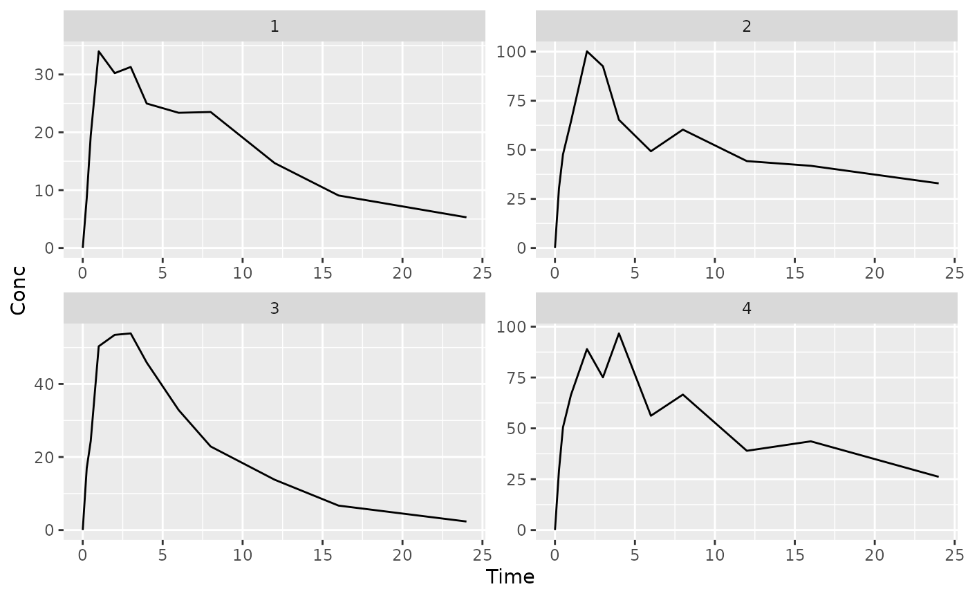 ggplot(dat, aes(x = Time, y = Conc, group= ID)) +