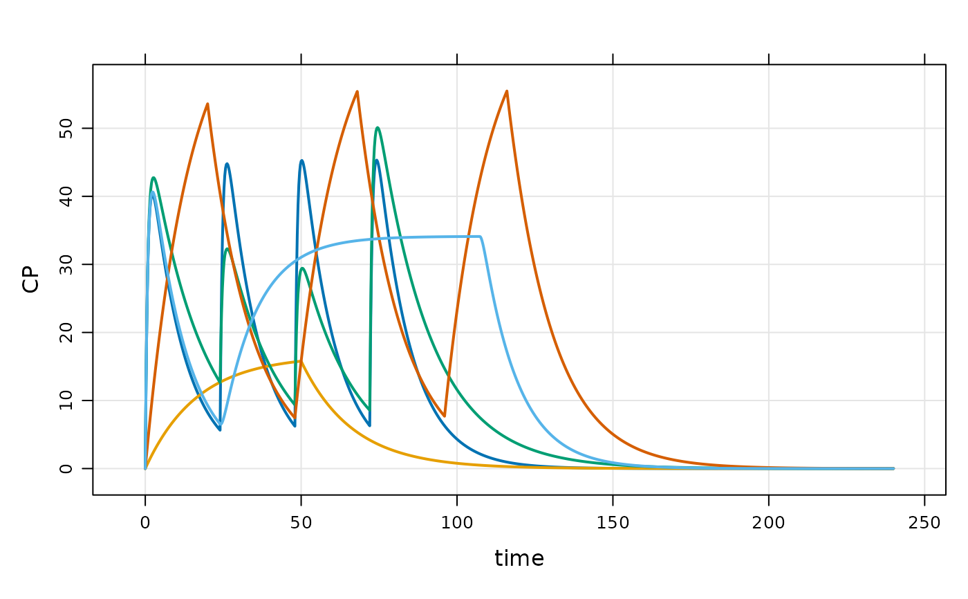 mod <- mrgsolve::house() %>% update(end=240) %>% Req(CP)