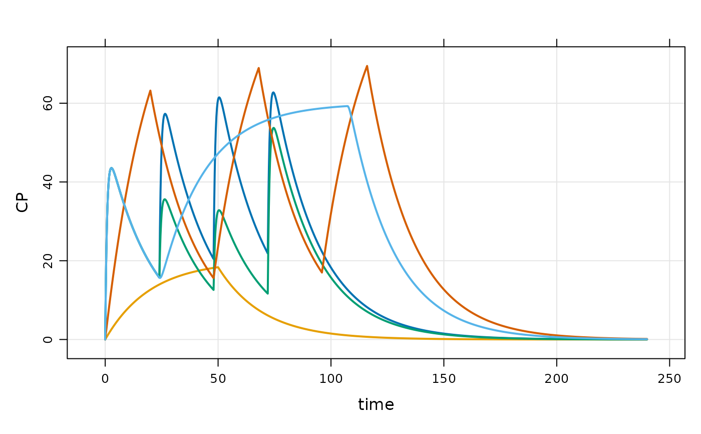 mod <- mrgsolve::house() %>% update(end=240) %>% Req(CP)