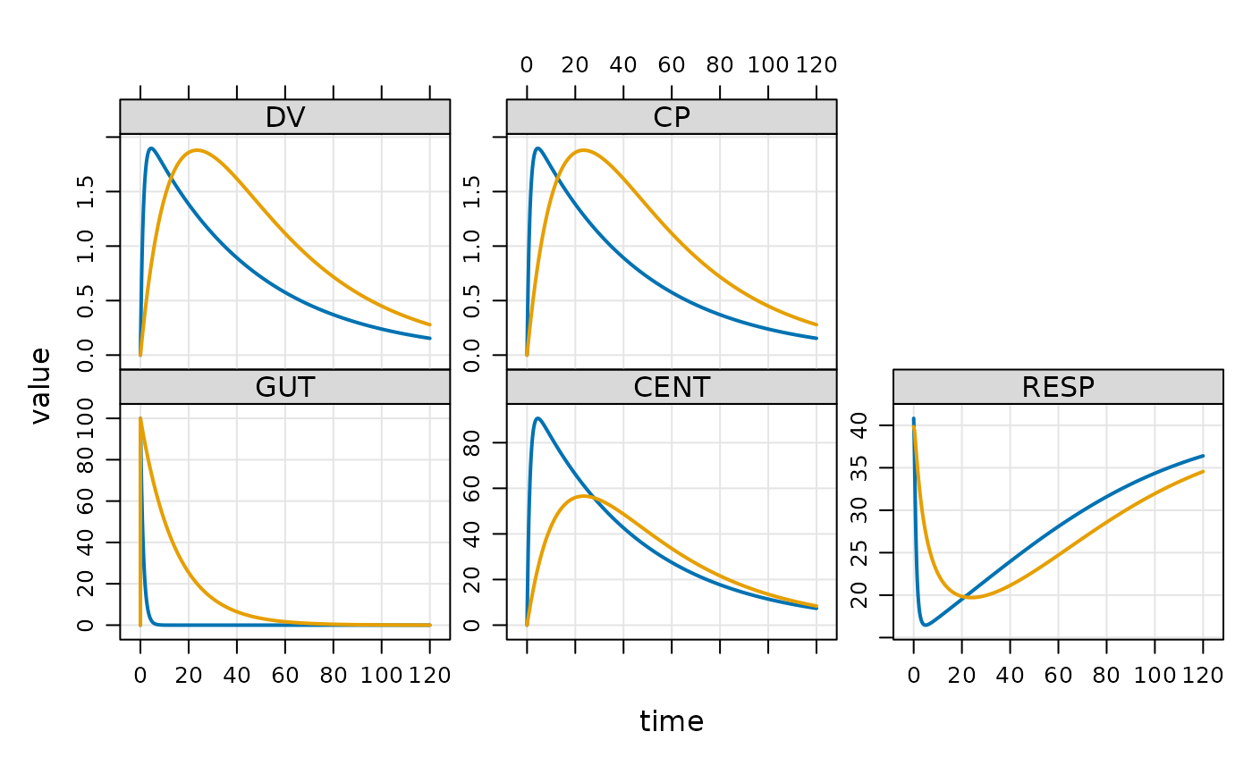 mod %>% ev(amt = 100) %>% mrgsim(idata=exidata)