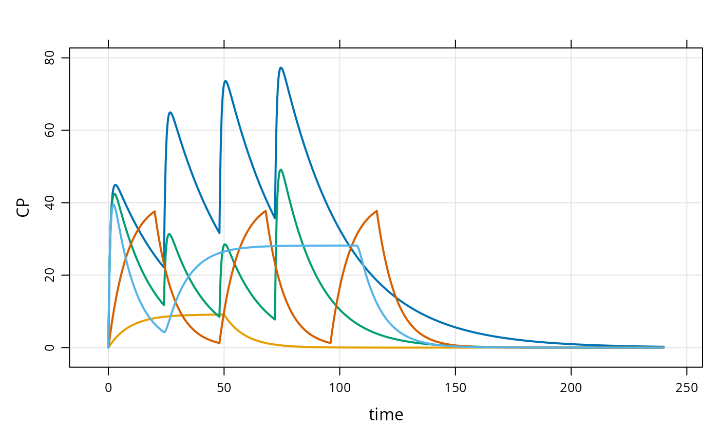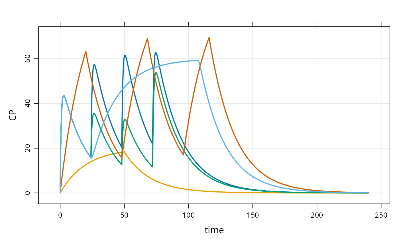 mod <- mrgsolve::house() %>% update(end=240) %>% Req(CP)