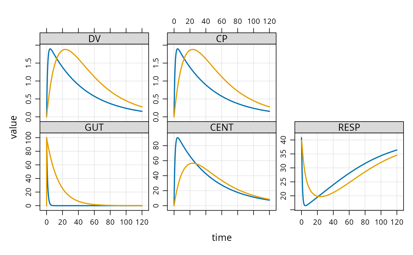 mod %>% ev(amt = 100) %>% mrgsim(idata=exidata)