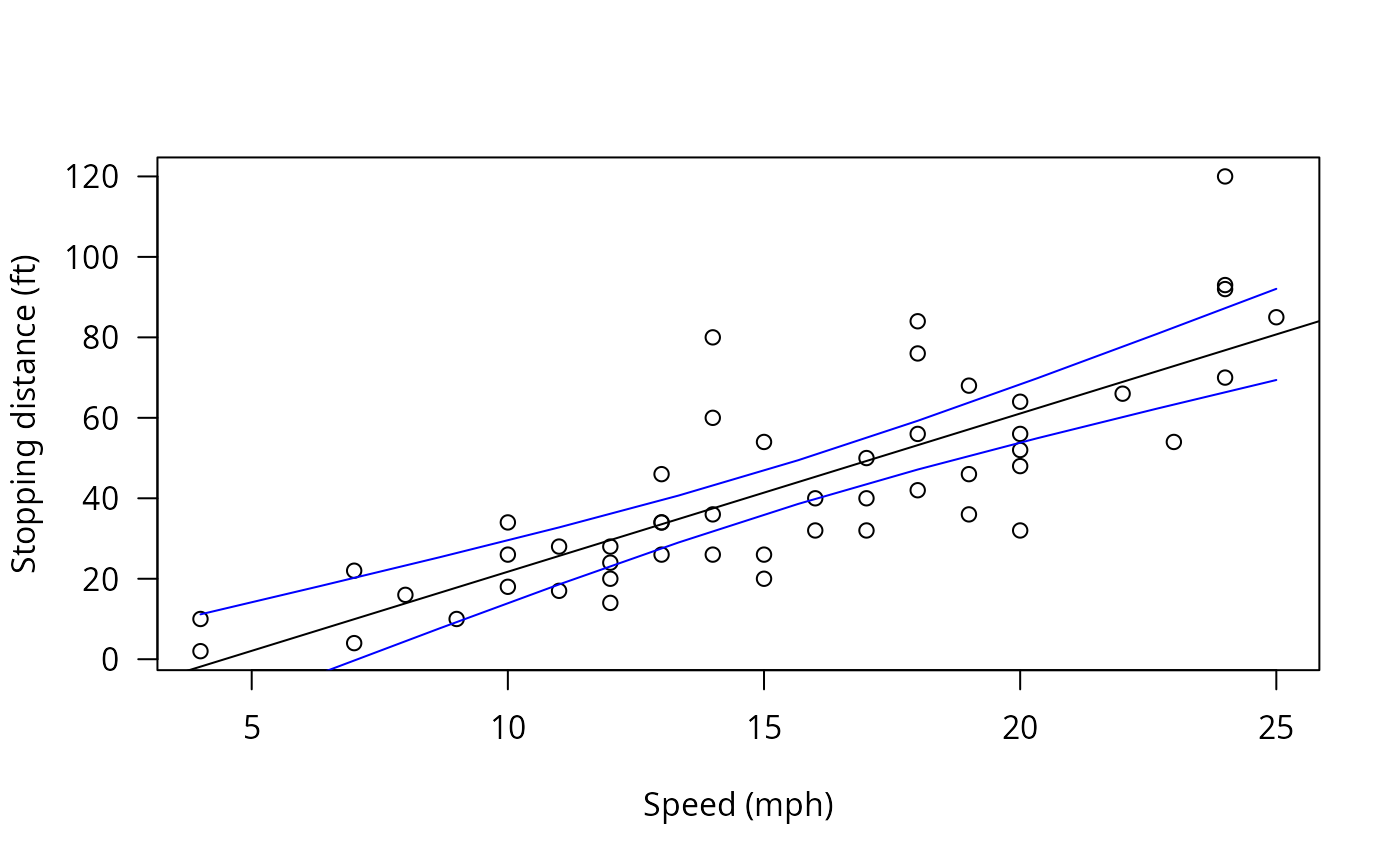 lines(speeds, cci$confint[,"lwr"], col = "blue")