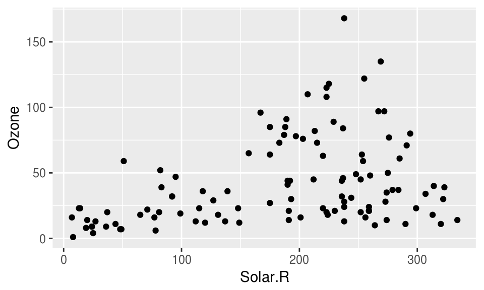 Typically, when exploring this data, you might want to explore the variables Solar.R and Ozone, and do something like this: