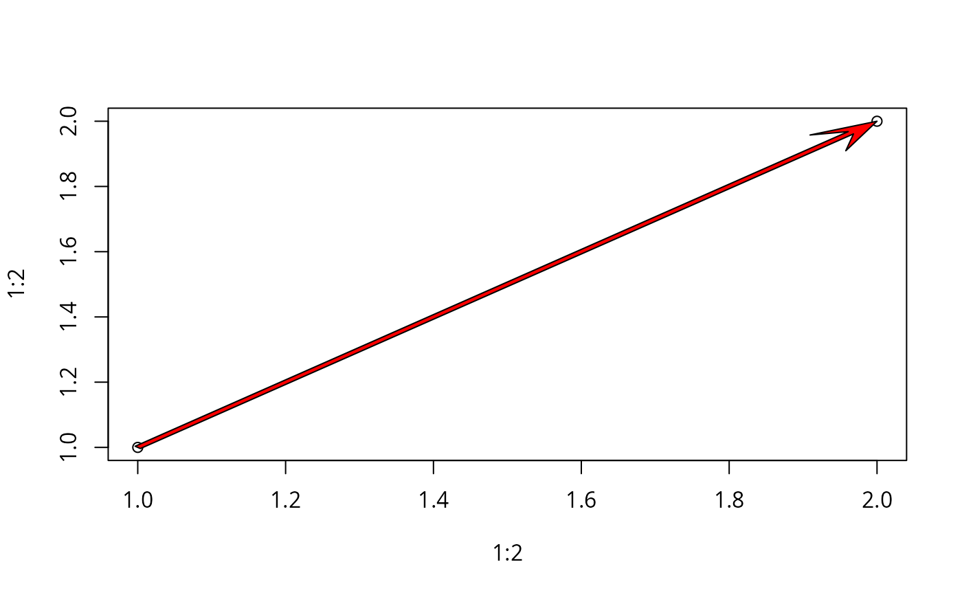network.arrow(1,1,2,2,width=0.01,col="red",border="black")