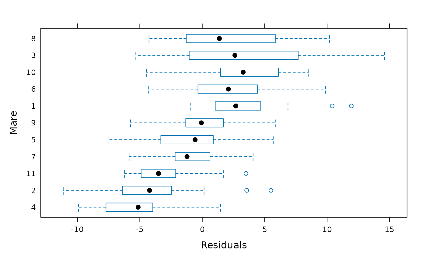 # box-plots of residuals by Mare