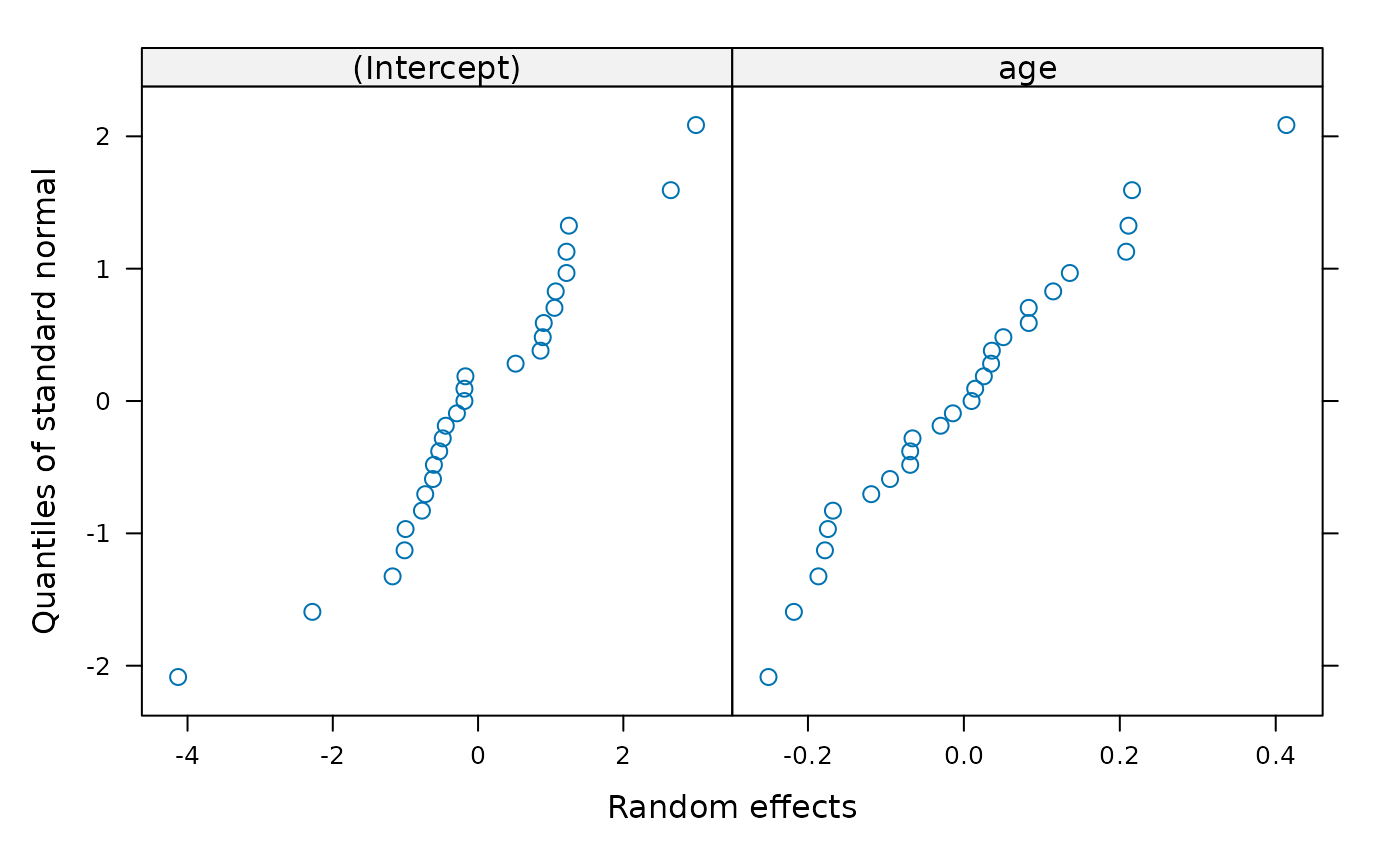 a diagnostic Trellis plot for assessing normality of residuals or random effects.