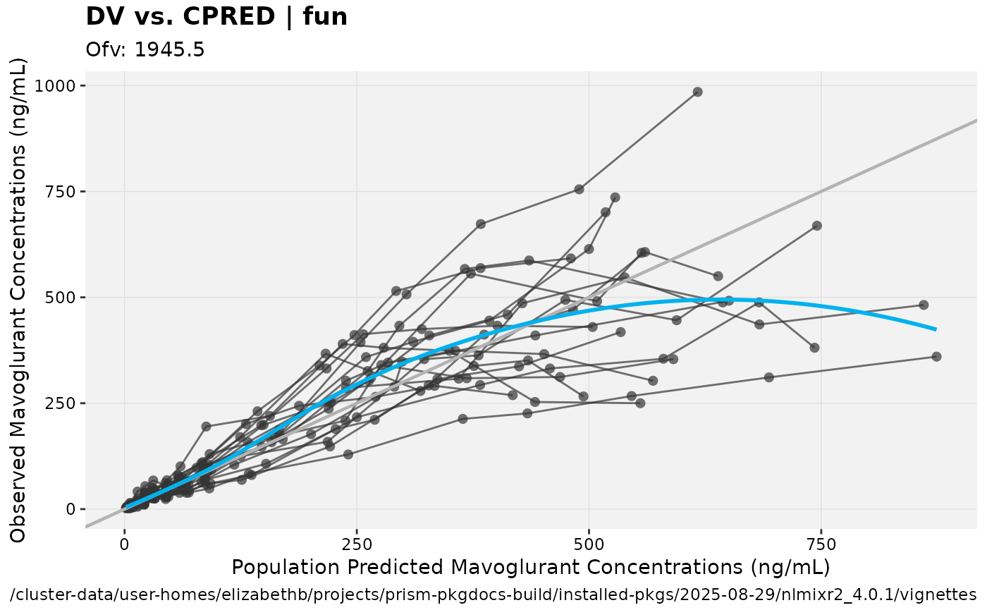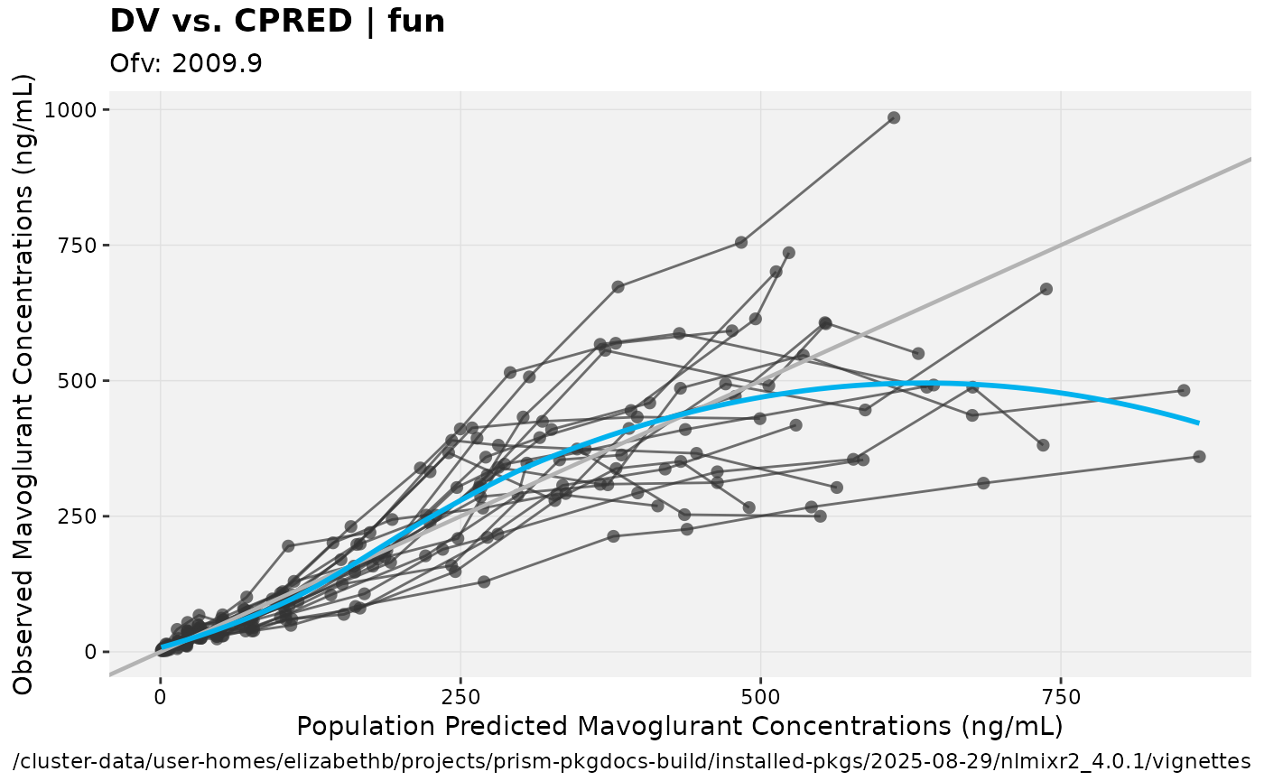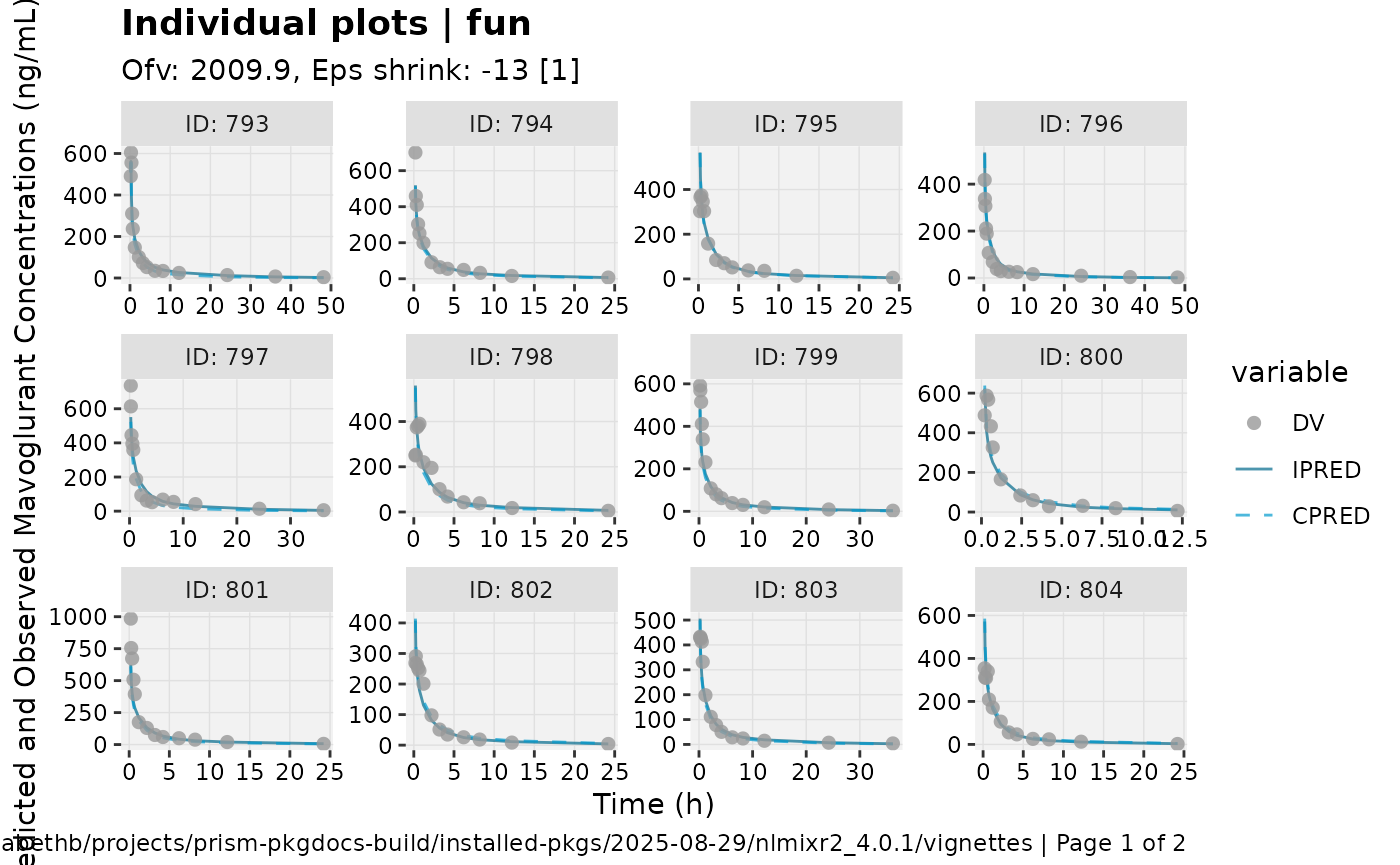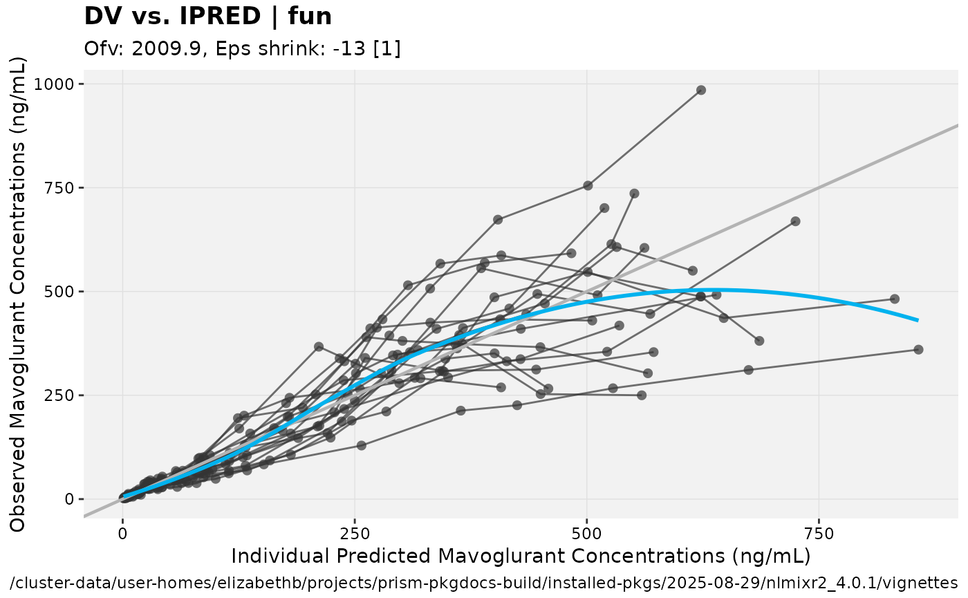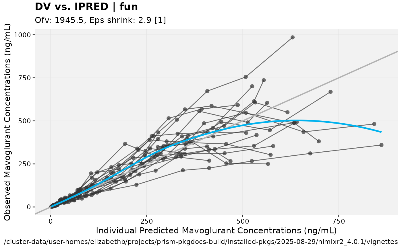 xpdb <- xpose_data_nlmixr(fit) ## Convert to nlmixr object