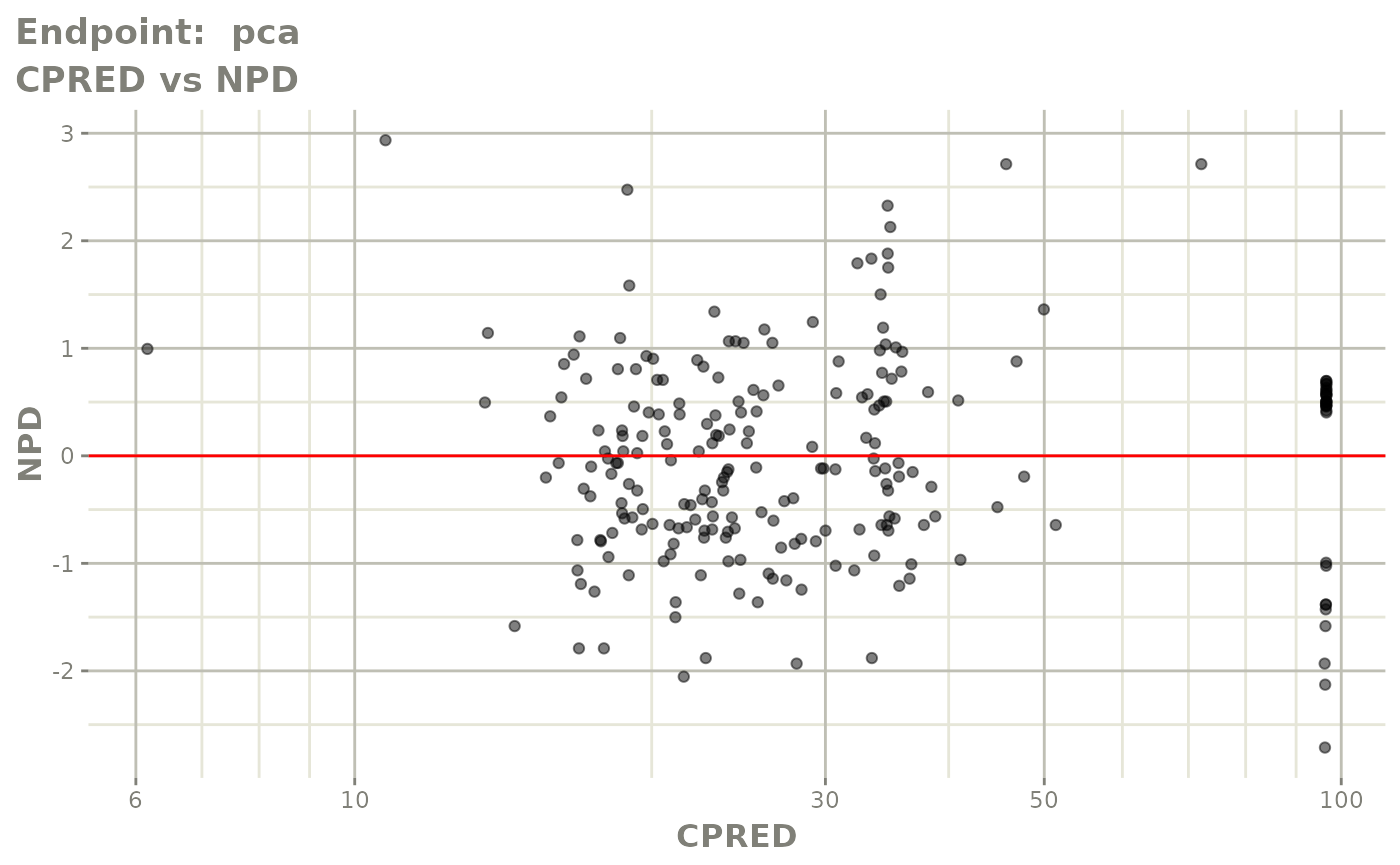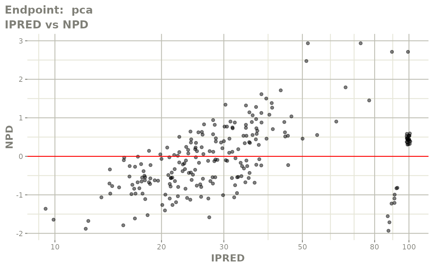 v2f <- vpcPlot(fit.TOF, show=list(obs_dv=TRUE), pred_corr = TRUE) +