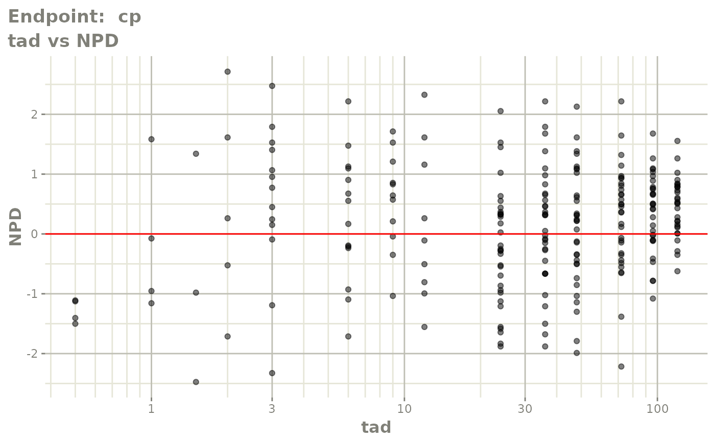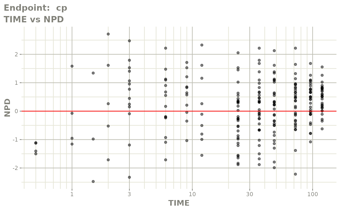 v1f <- vpcPlot(fit.TOF, show=list(obs_dv=TRUE), scales="free_y") +