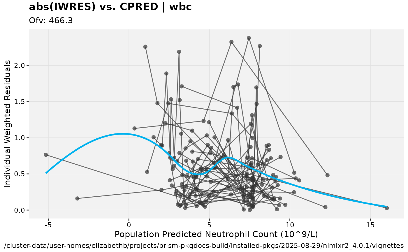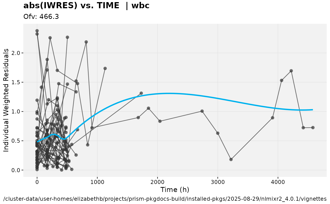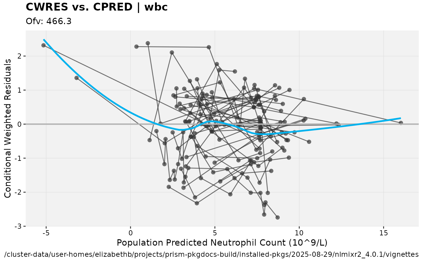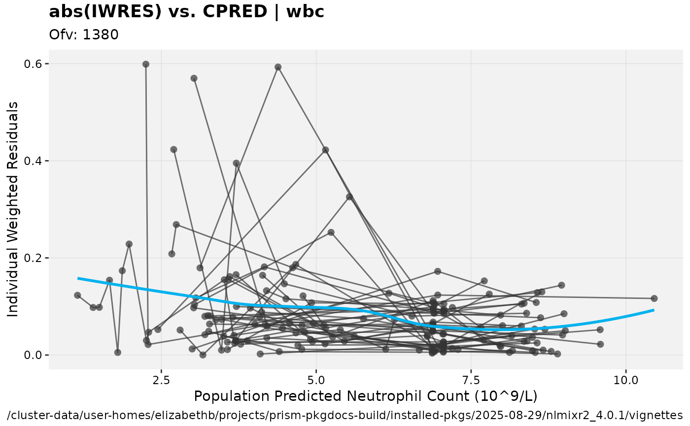 fit.F <- nlmixr(wbc, d3, est="focei", list(print=0), table=list(cwres=TRUE, npde=TRUE))