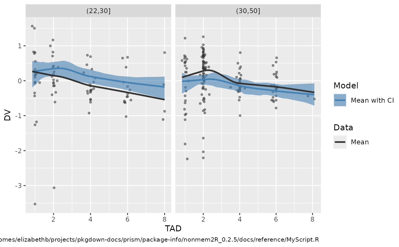 vpcfig3(sdtab,vpc,dv="DV",idvs="TAD",strata="age.group")