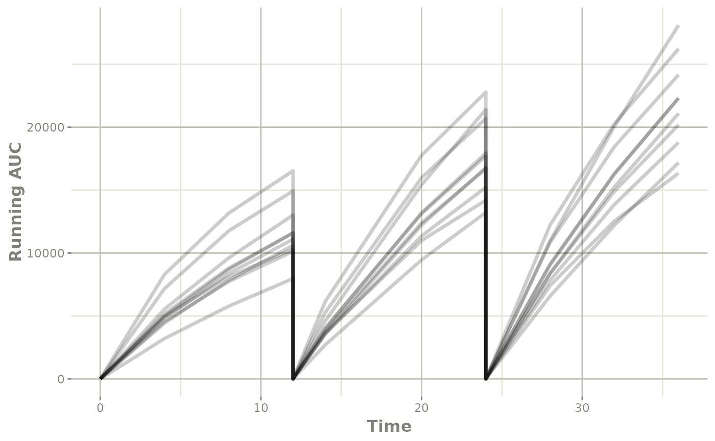 the individual running AUC profiles you simulated: