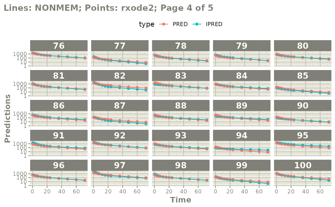 #> NONMEM/rxode2 comparison data: $iwresCompare, $predCompare, $ipredCompare