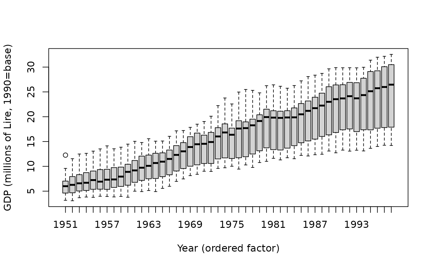 data-italy.RdItalian GDP growth panel for 21 regions covering the period 1951-1998 (millions of Lire, 1990=base). There are 1008 observations in total.