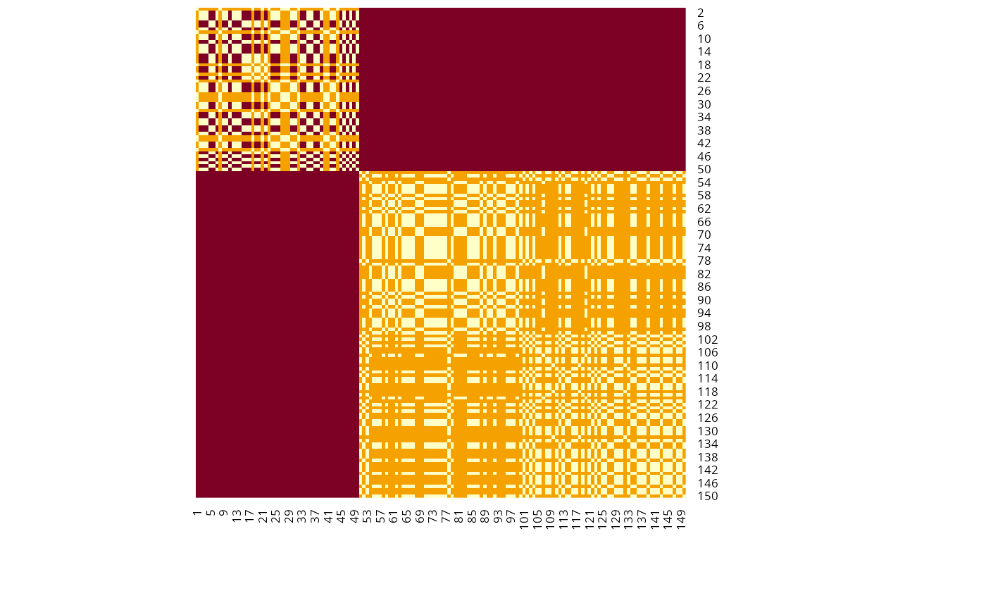 heatmap(m, Rowv = NA, Colv = NA, scale = "none") # Without reordering