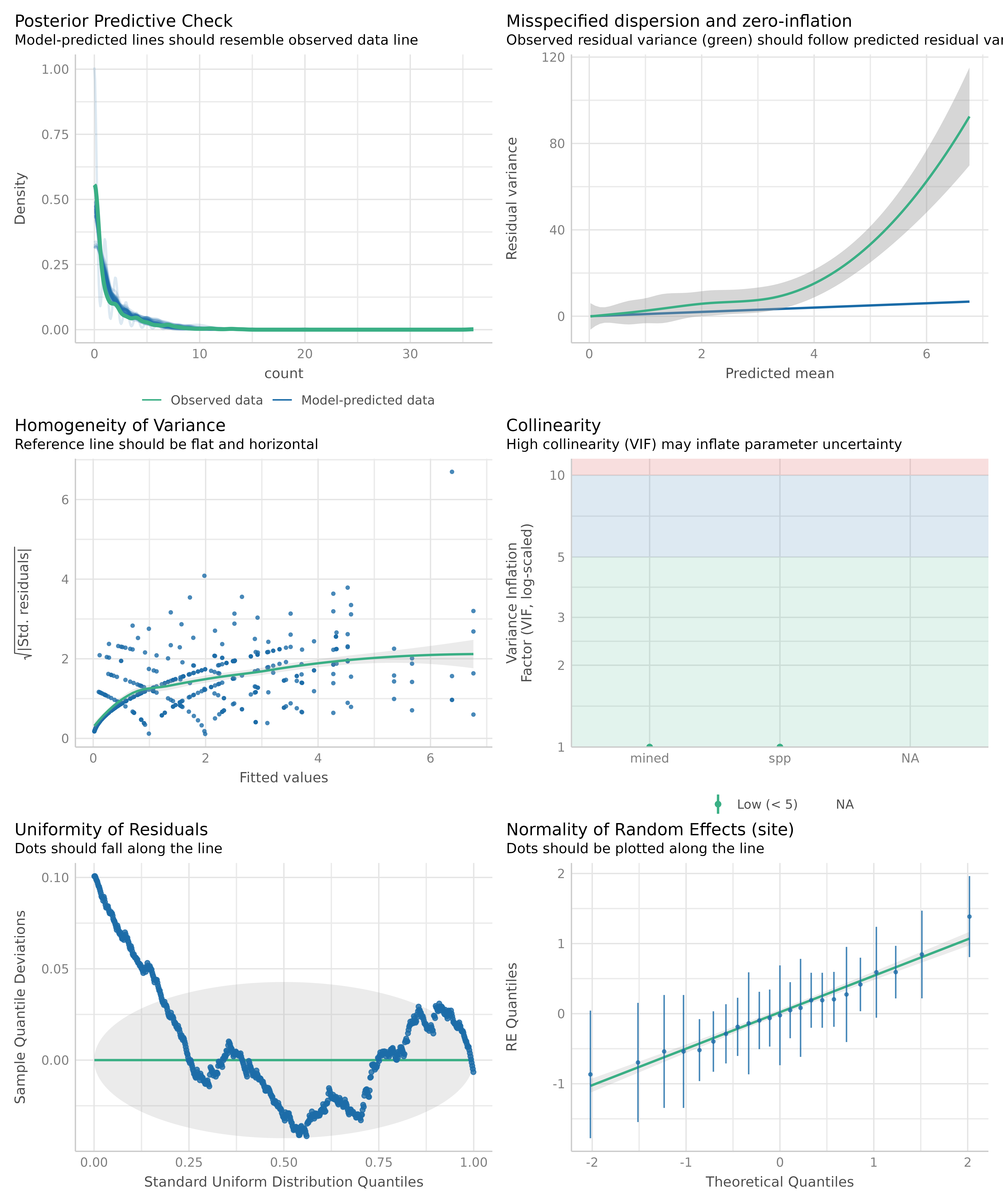 #> Model is underfitting zeros (probable zero-inflation) (p < .001).