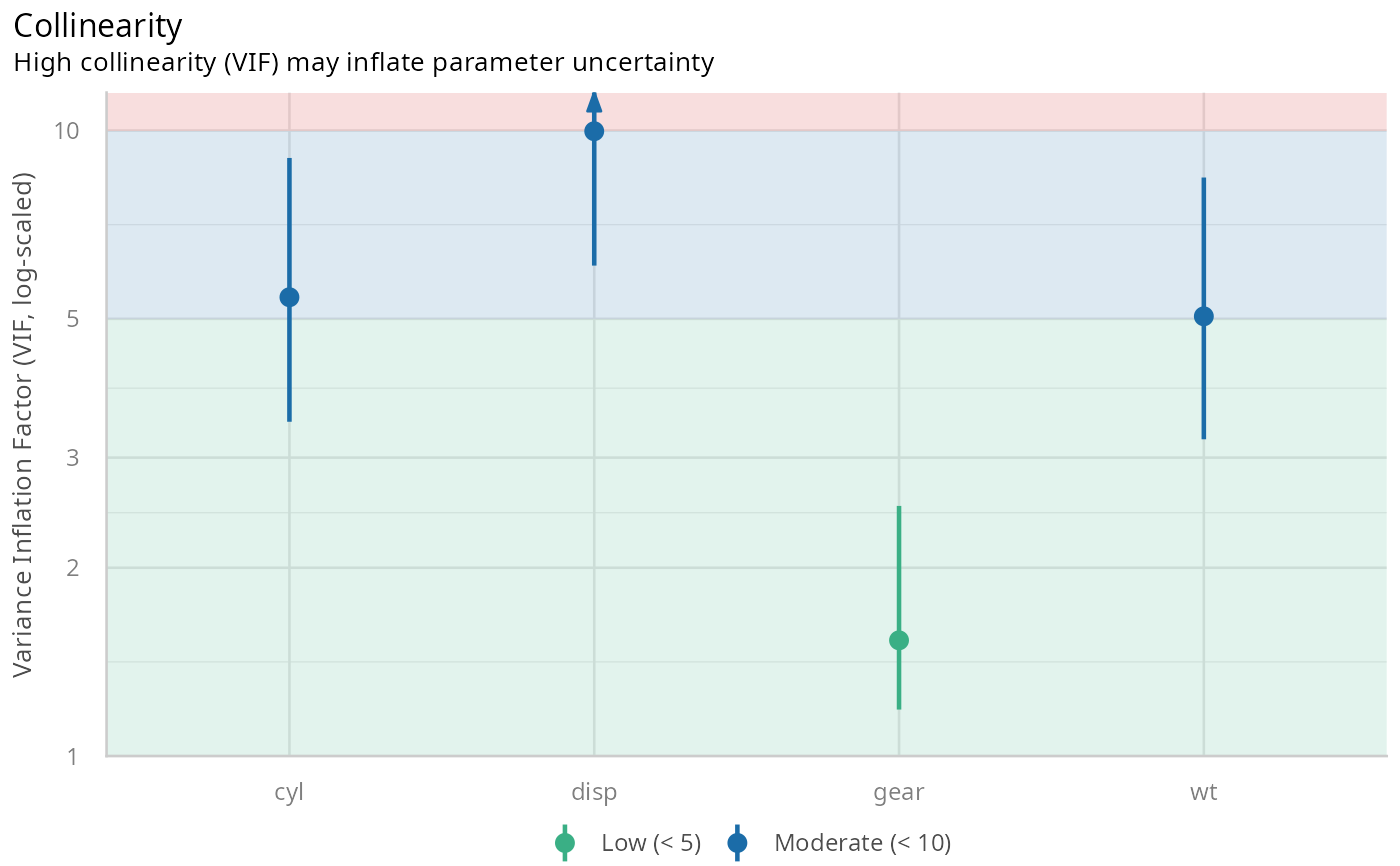 see::plot.see_check_collinearity() for options to customize the plot.