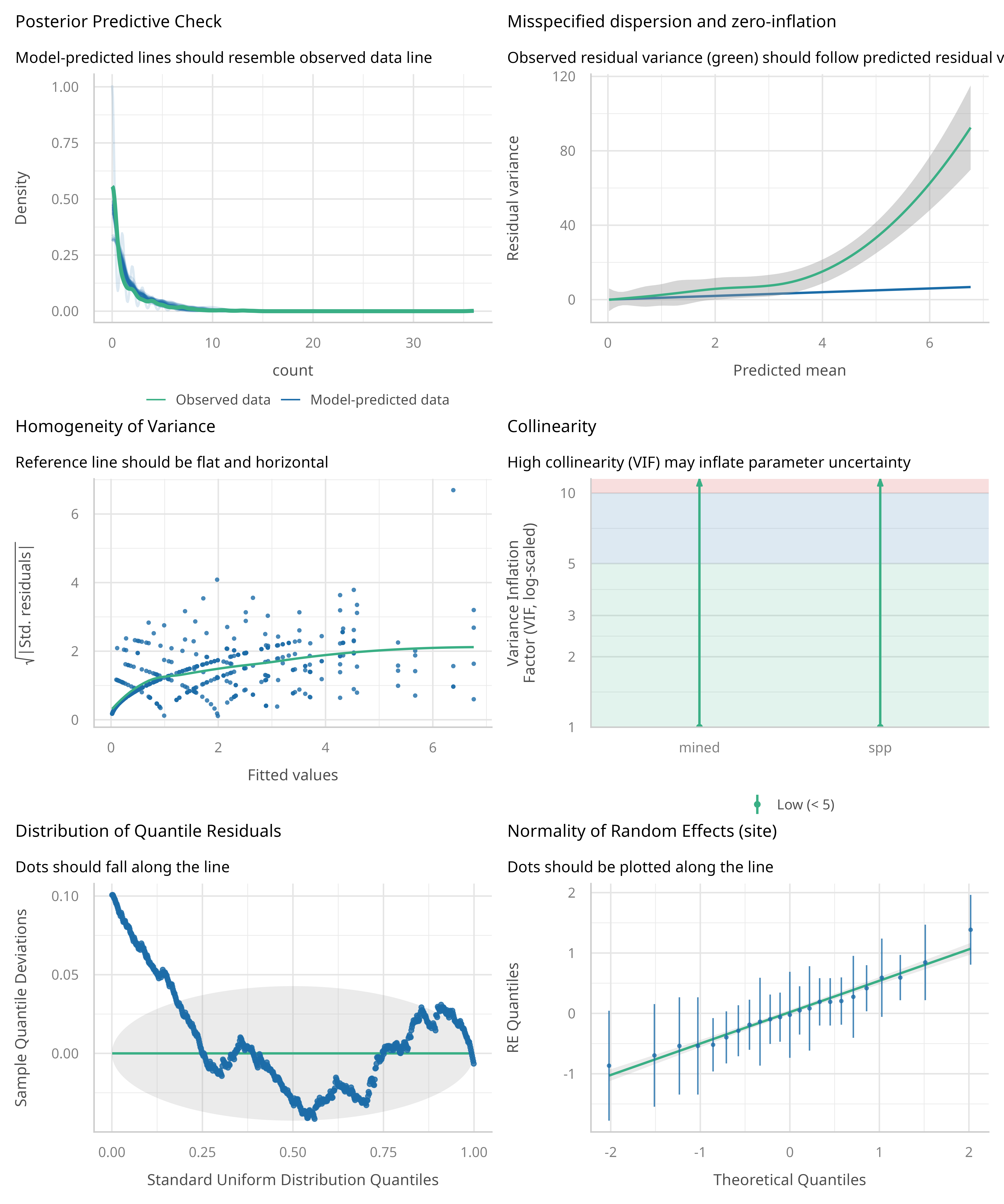#> Model is underfitting zeros (probable zero-inflation) (p < .001).