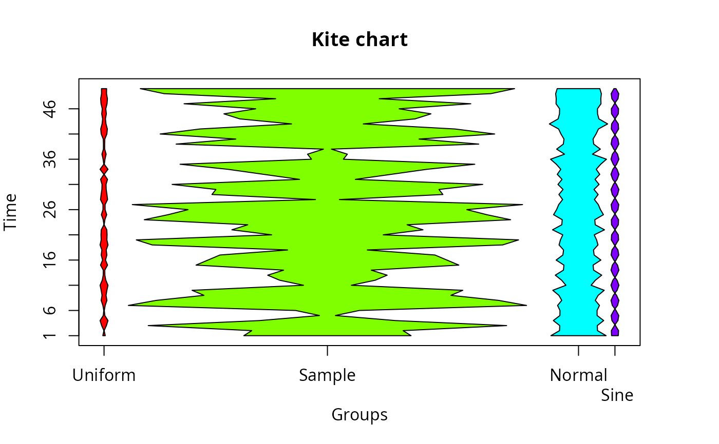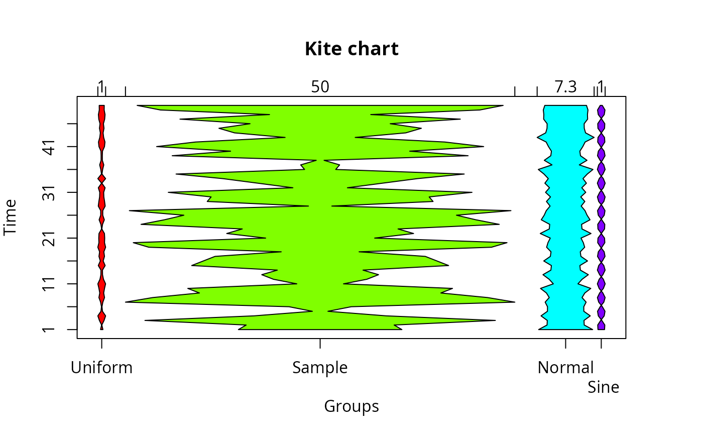 kiteChart(testmat,varlabels=c("Uniform","Sample","Normal","Sine"),