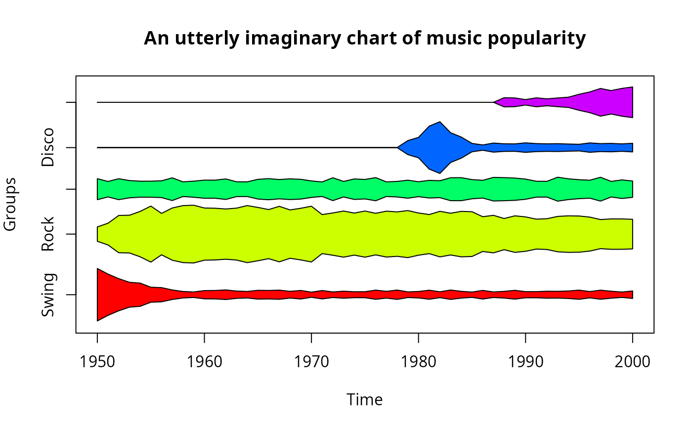 main="An utterly imaginary chart of music popularity",xlab="Style",