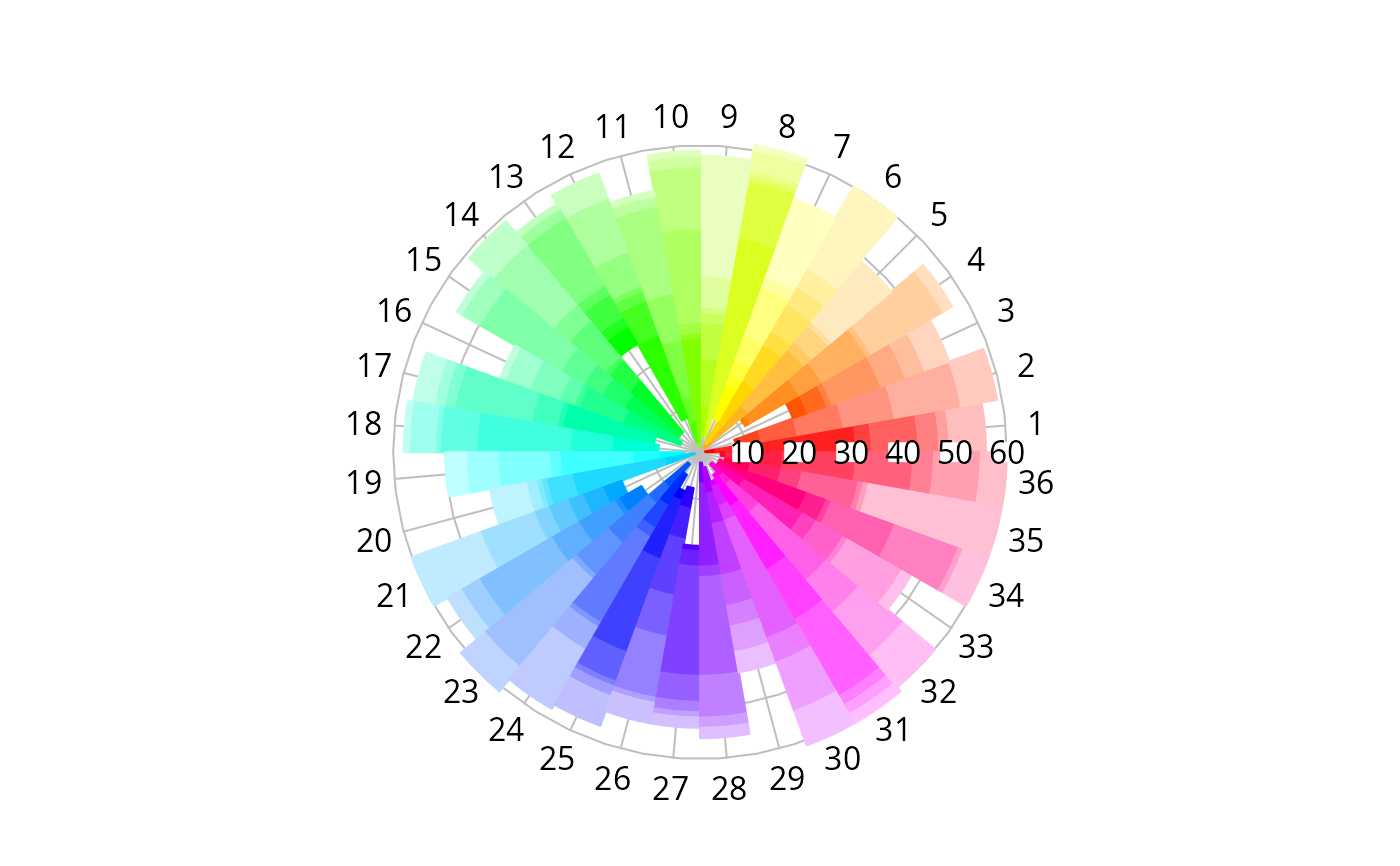 Plot numeric values as sectors with optional annuli on a circular field in the directions defined by angles in radians.