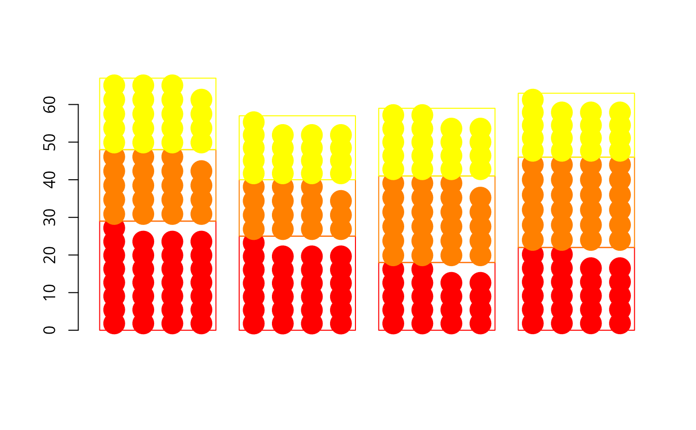 Produces a barplot where each piece of the barplot is filled with the number of symbols equal to the size of the bar