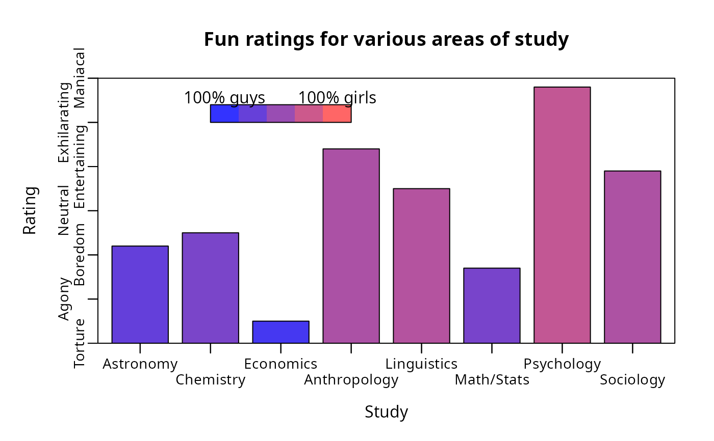 barp(funrating,names.arg=funstudy,main="Fun ratings for various areas of study",