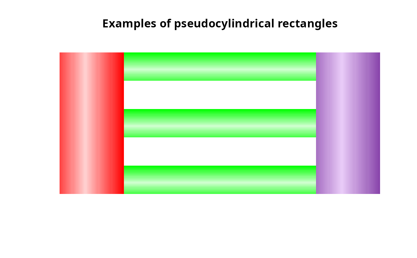 plot(0,xlim=c(0,5),ylim=c(0,5),main="Examples of pseudocylindrical rectangles",