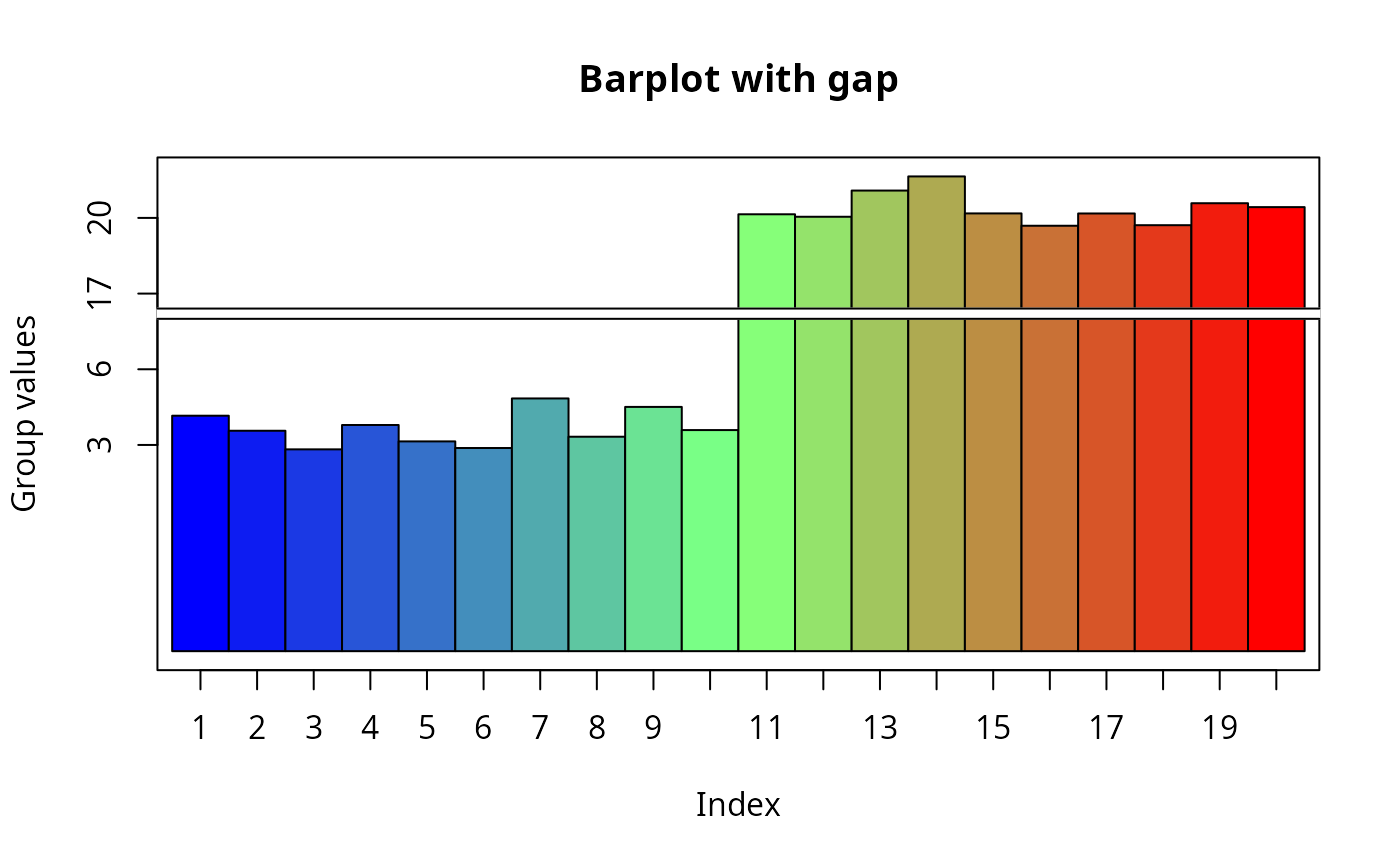ylab="Group values",main="Barplot with gap")