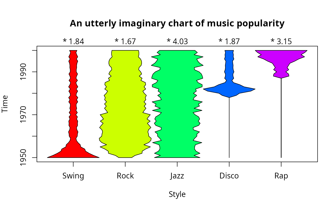 main="An utterly imaginary chart of music popularity",xlab="Style",