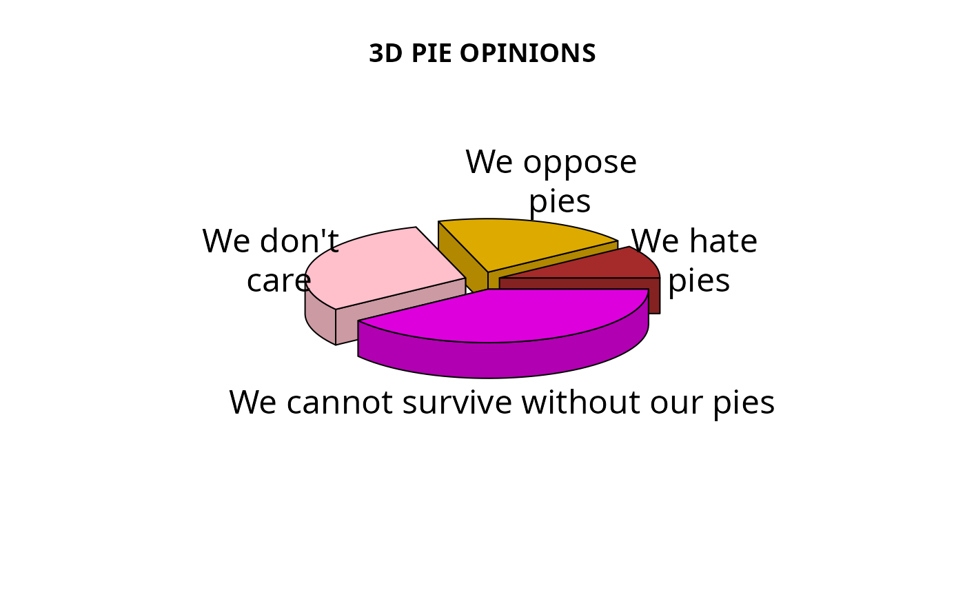 pie3D(pieval,radius=0.9,labels=pielabels,explode=0.1,main="3D PIE OPINIONS",