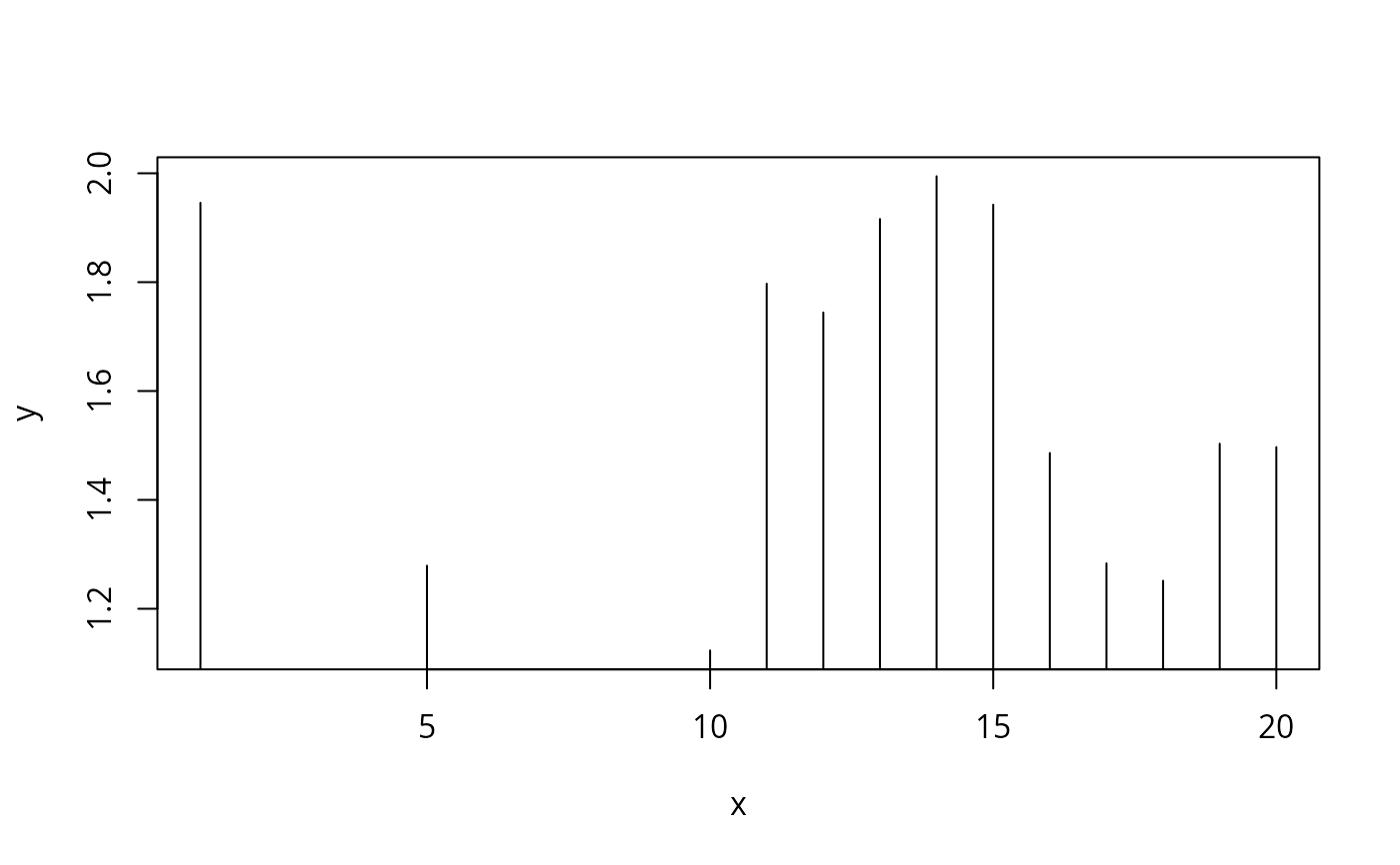 d<-data.frame(x=c(1,5,10:20),y=runif(13)+1,